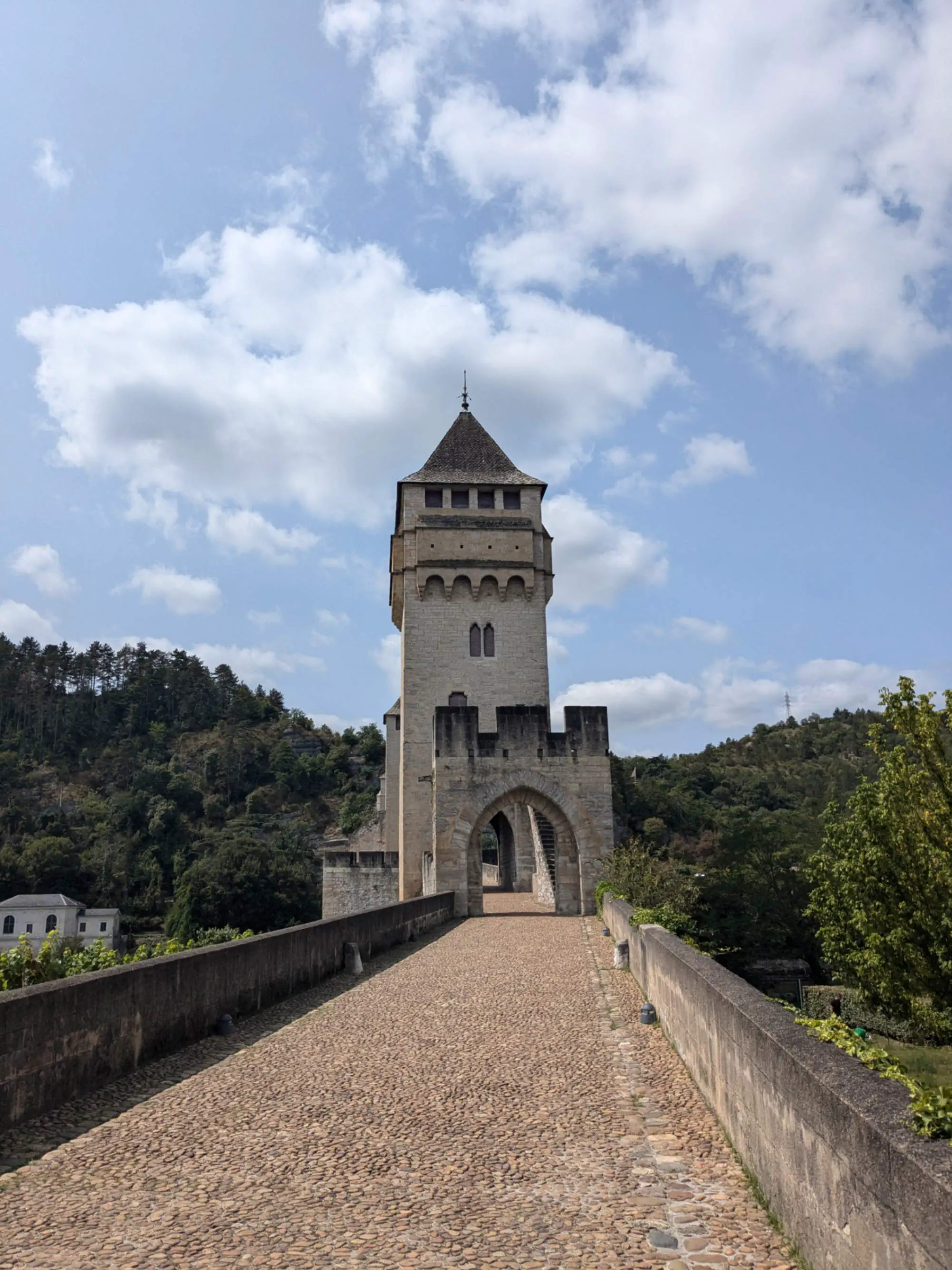 Malheureusement la suite du trajet est bien longue et monotone. Le long du Lot, dans un petit sous-bois boueux, nous traînons nos pieds endoloris, sans autre vue que de piètres champs de maïs. L’arrivée à Cahors est tout de même joyeuse. Un peu de musique en ville, une petite pizzeria, qui semblait nous attendre, nous accueille.