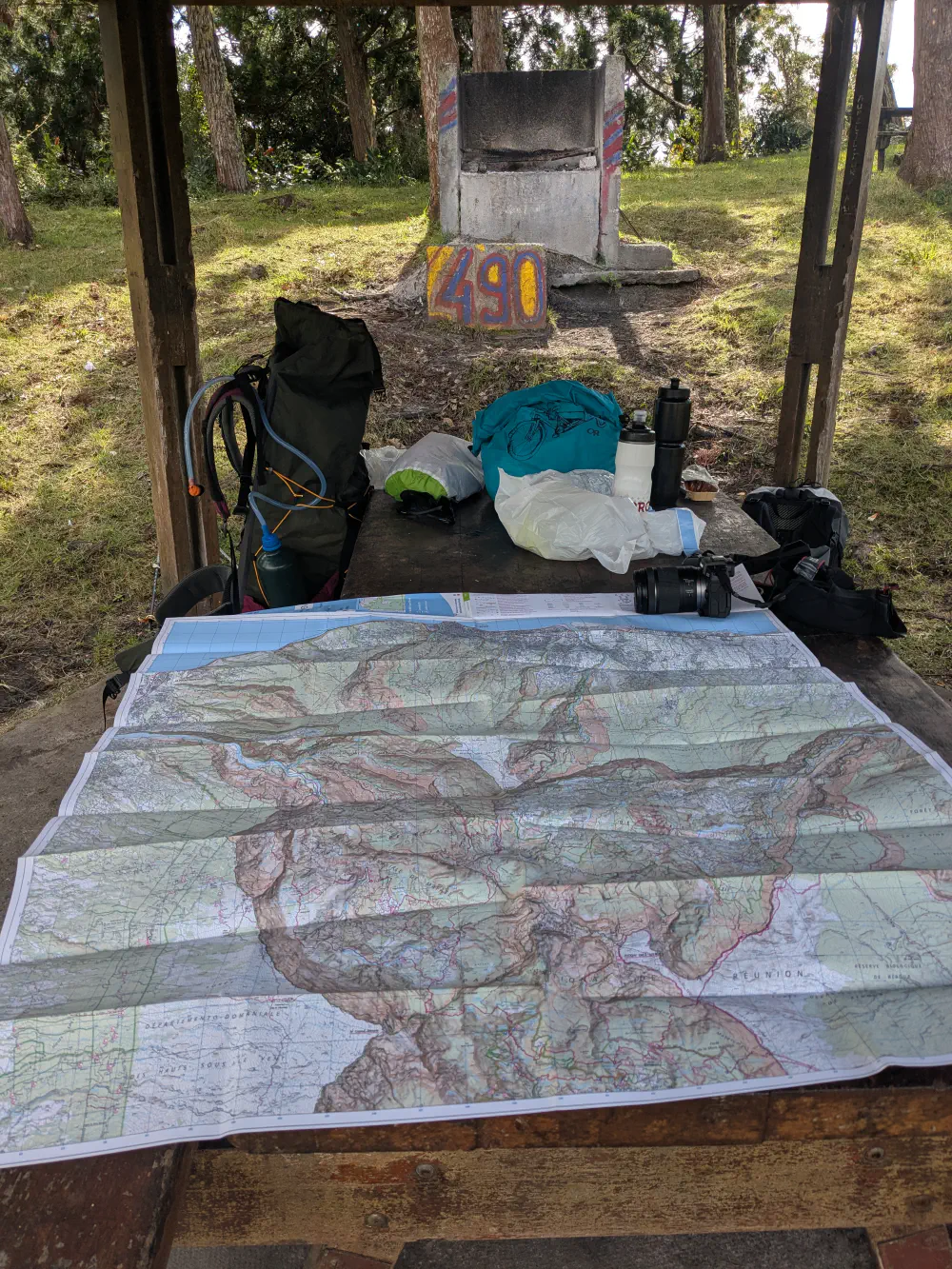 Plus nous avançons, plus la nature devient luxuriante et exotique. Au bout d’environ 6h d’effort, nous atteignons le gîte de la Roche Écrite. Une bande de joyeux lurons jouant du djembé nous y accueille et nous montons la tente dans un coin reculé. La douche est aussi froide que l’accueil est chaleureux. Autour d’une bière nous échangeons nos premiers doutes : avons-nous pris des vêtements assez chauds ? L’hiver doux de la Réunion ne serait-il pas plus rude que prévu ? On se dit que s’il fait si froid, on ira se coucher plus tôt.