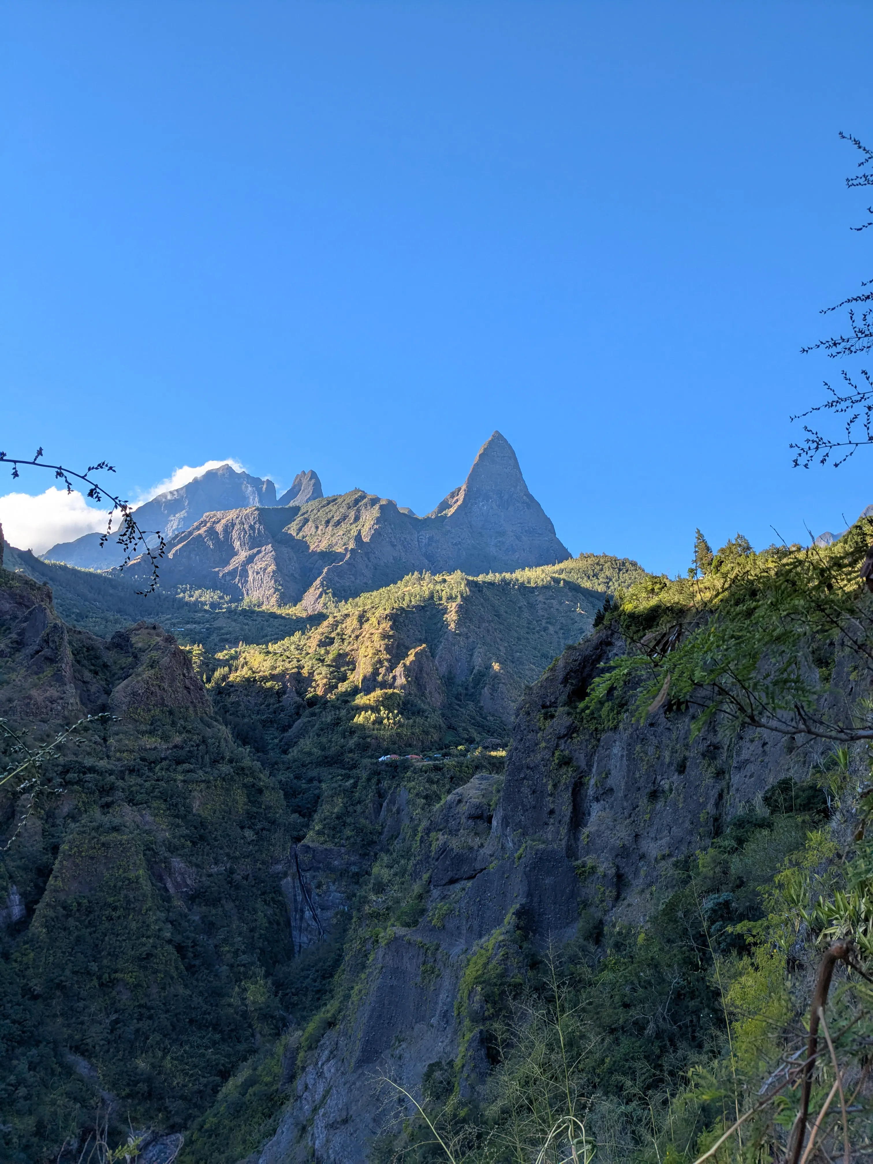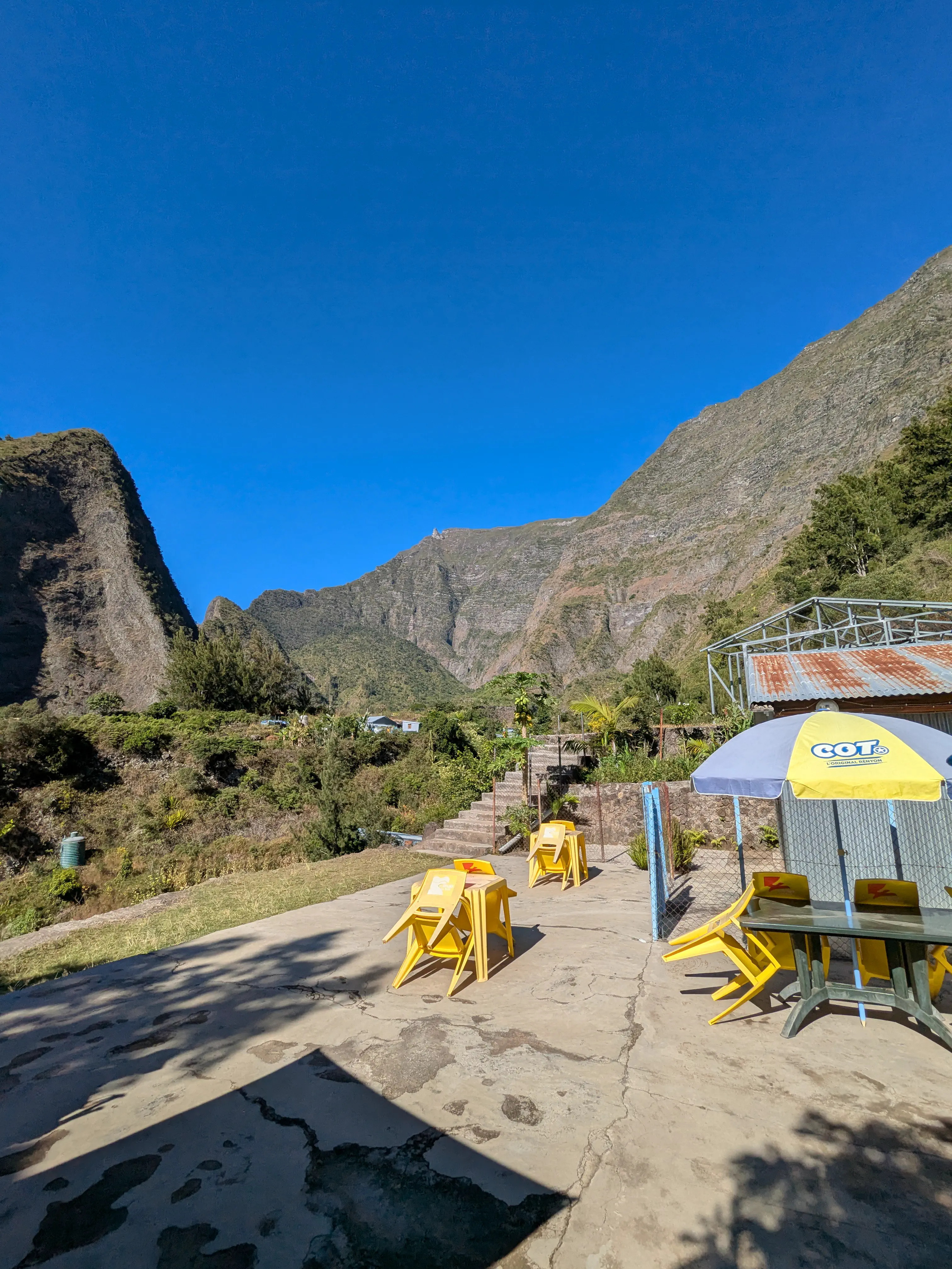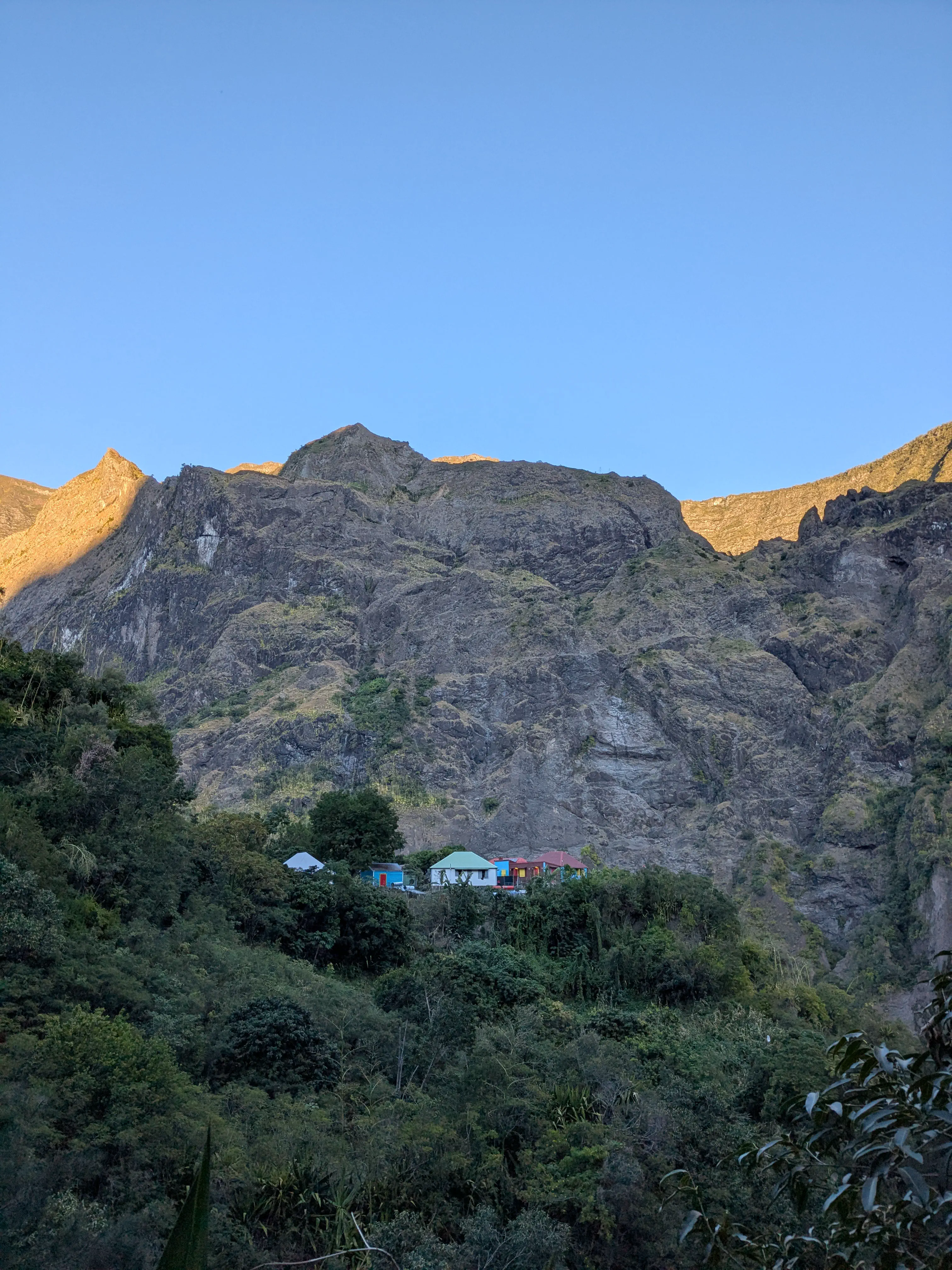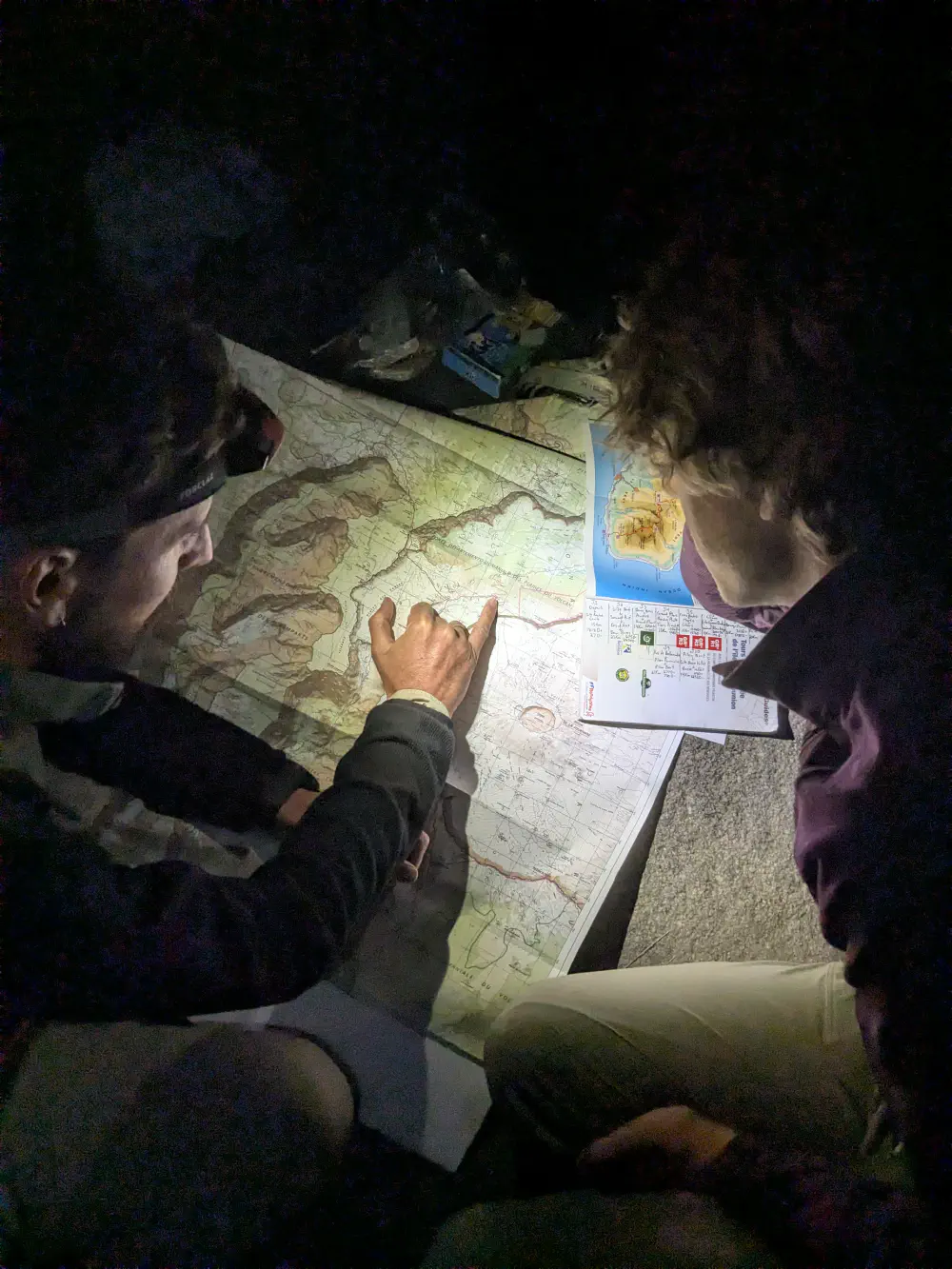 Une longue redescente parsemée de quelques violentes montées nous emmène ensuite vers les Trois Roches, cascade emblématique de la région, où nous retrouvons notre ami Camille, rencontré sur le GR20 en septembre dernier. Nous sommes à court de nourriture fraîche, faute d’avoir pu faire des courses à la Roche Plate, dernier village rencontré. Camille nous prête heureusement une bouteille de gaz, qui nous permet d’entamer les produits lyophilisés.