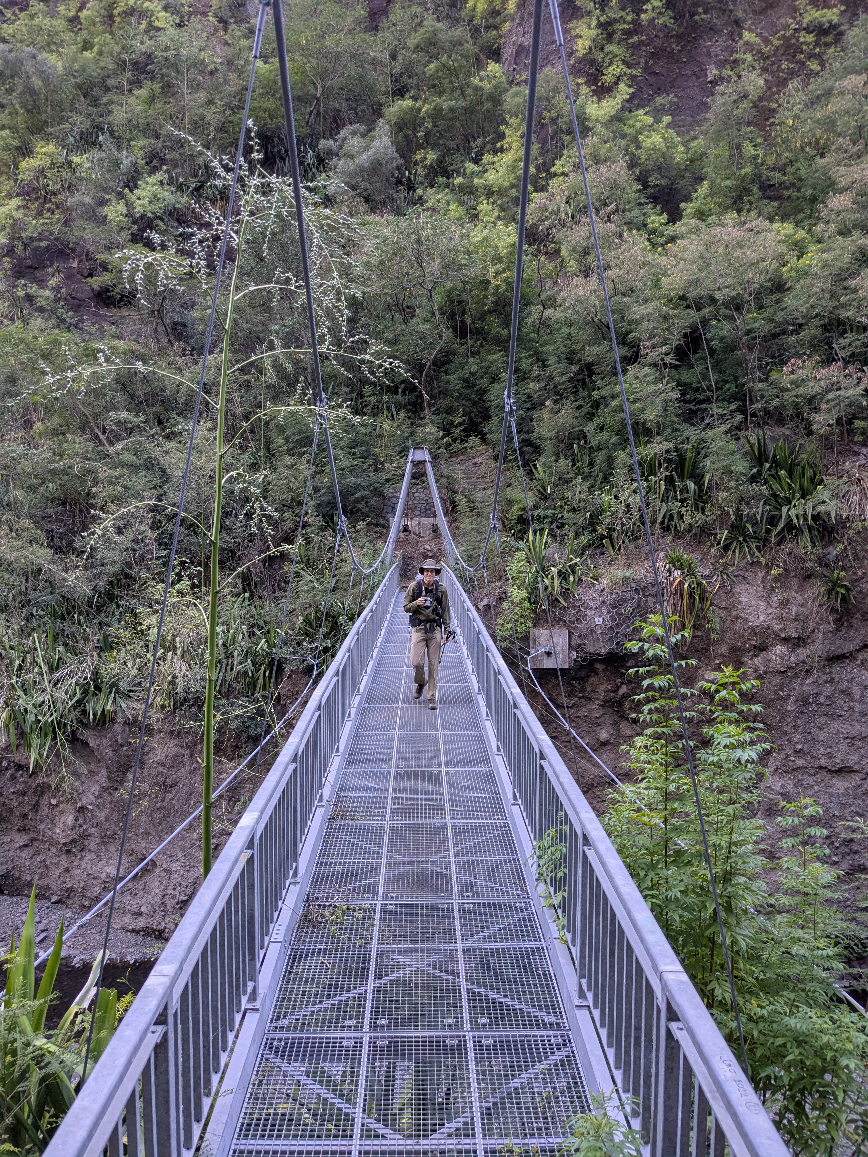 Notre journée commence avec un petit plaisir : des bananes locales offertes par la tenancière du camping où nous dormons, qui nous les offre en accompagnement de notre sempiternel avoine au lait. La descente vers les gorges est comme toujours brutale, de grandes marches de pierre qu’il faut enjamber ; puis recommencer en sens inverse de l’autre côté.