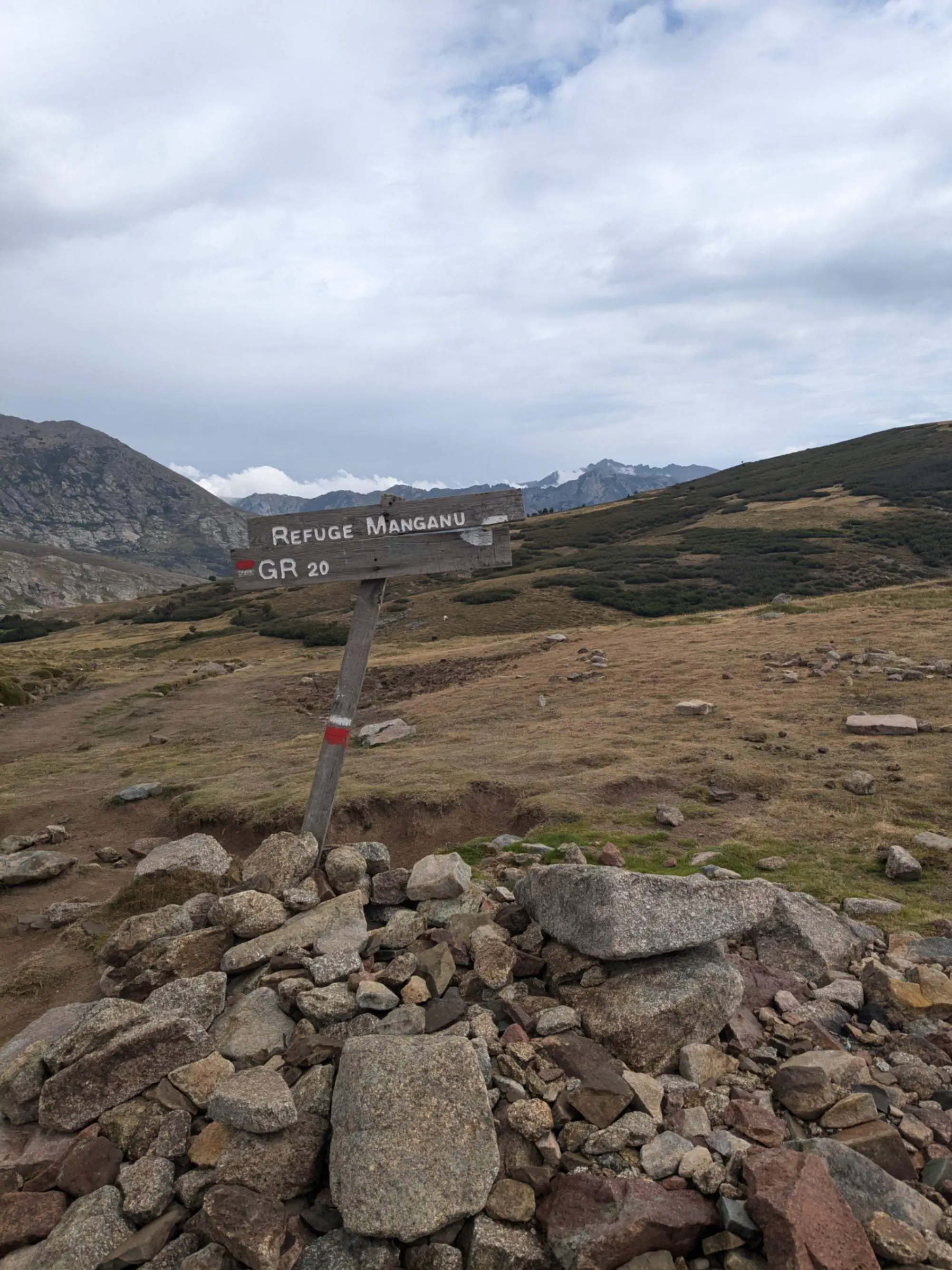 Nous déjeunons au restaurant et profitons de ce regain d’énergie pour tracer notre route en direction de notre bergerie. En effet, comme à l’accoutumée, l’orage menace. Après une nouvelle ascension, une descente herbeuse prêt des bords du lac de Nino puis un long repart, nous arrivons enfin à notre point de chute. L’endroit est rustique, c’est le moins qu’on puisse dire. Le berger nous vend des bières, du saucisson et du fromage maison. De quoi refaire nous forces, bien que l’odeur du fromage pourrait sans problème garder éveillée un bataillon de légionnaires.