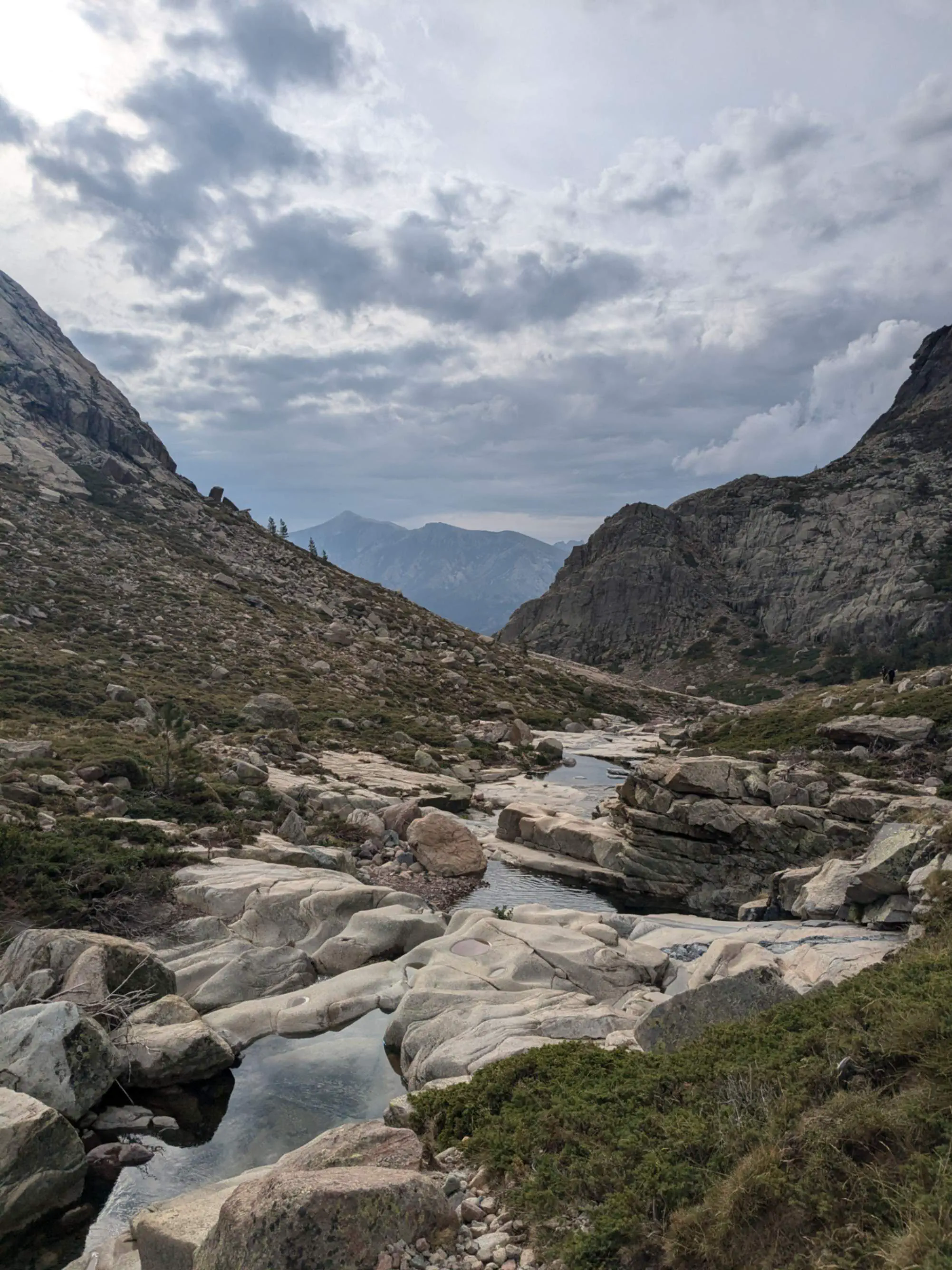 Cette journée est placée sous le signe de la découverte du centre de la Corse, dont les paysages sont bien différents de ceux auxquels nous avons été habitués jusqu’alors. Désormais nous découvrons forêts, rivières douces et roches rondes.