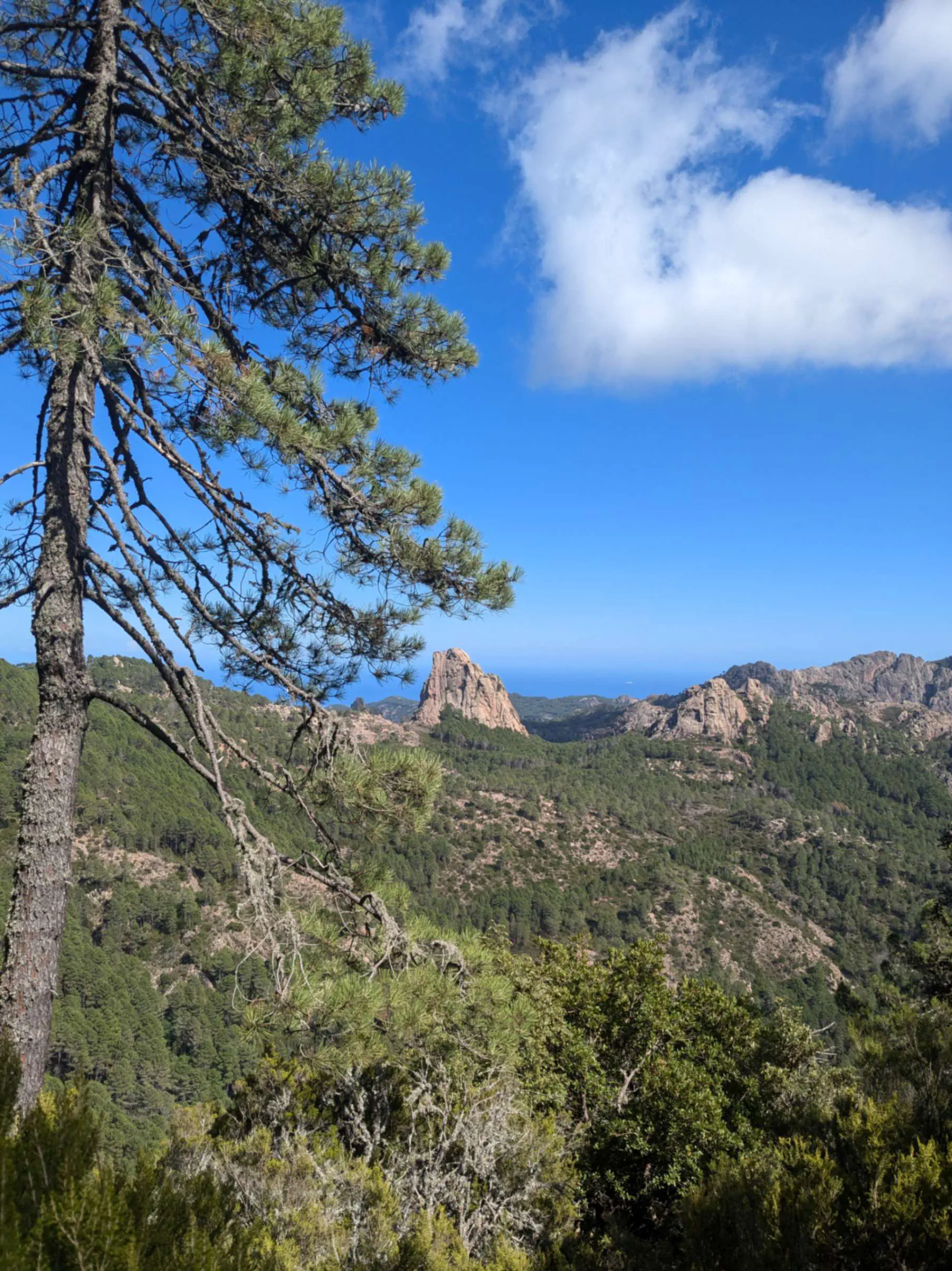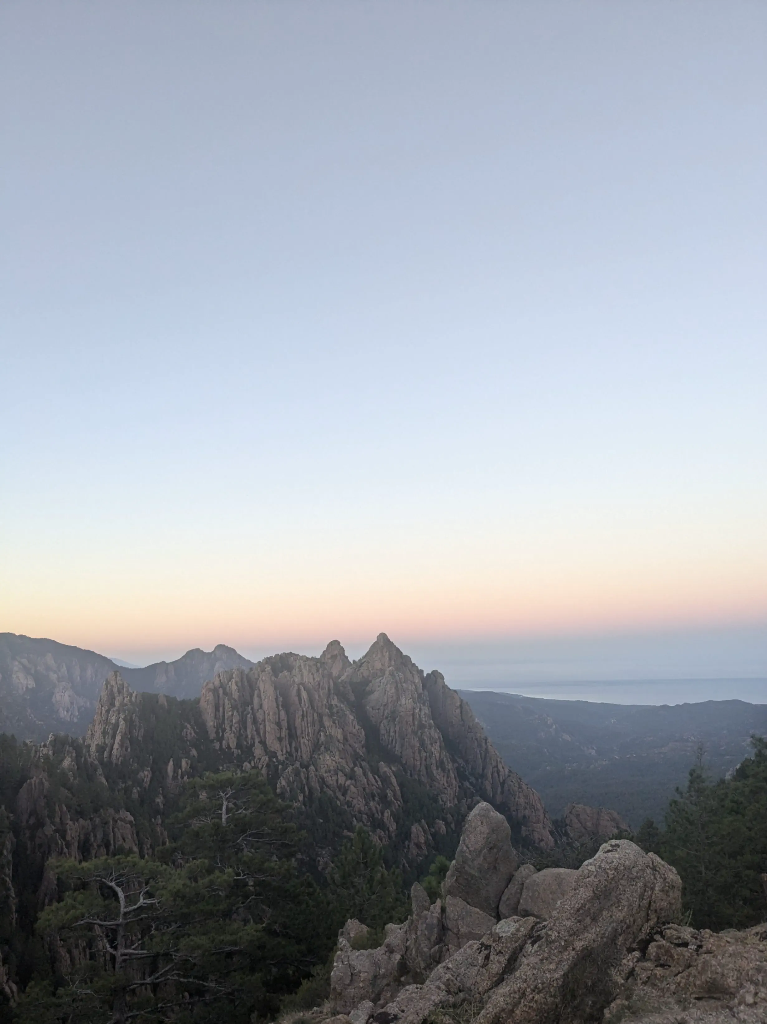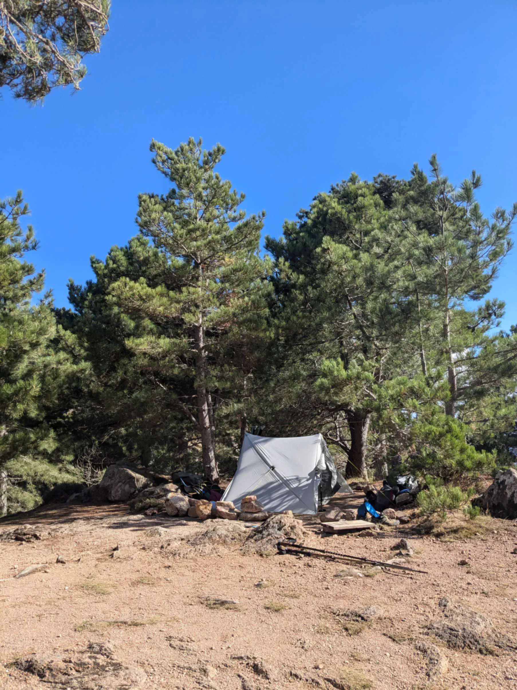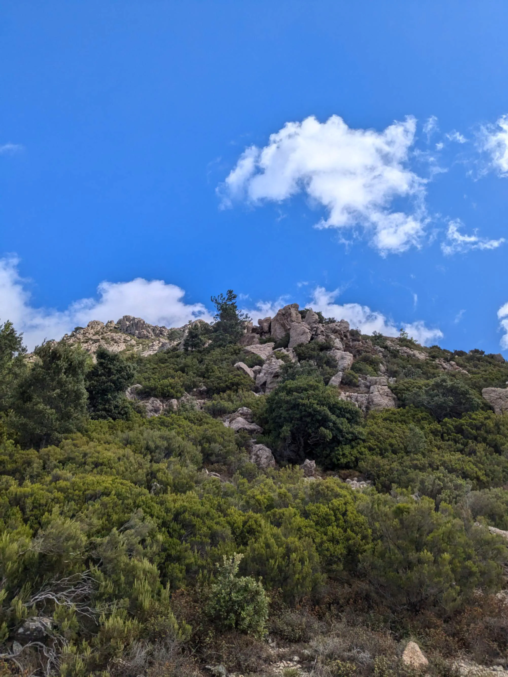 Pour prendre de la route du refuge de Paliri, nous avons deux options : parcours officiel, ou variante “alpine”. Seulement, le vent souffle aujourd’hui par rafales de plus de 100km/h. Je n’étais pas emballé par l’idée, le gardien d’Asinau nous en dissuade définitivement. Nous optons donc pour la longue et sinueuse route de la vallée, qui serpente à flanc de colline jusqu’au col de Bavella. Une petite dose de civilisation nous y attend, puisque le col est très fréquenté par les touristes, qui peuvent s’y rendre en voiture et déjeuner dans l’un des nombreux restaurants. Enfer de gros SUVs, nous filons rapidement.