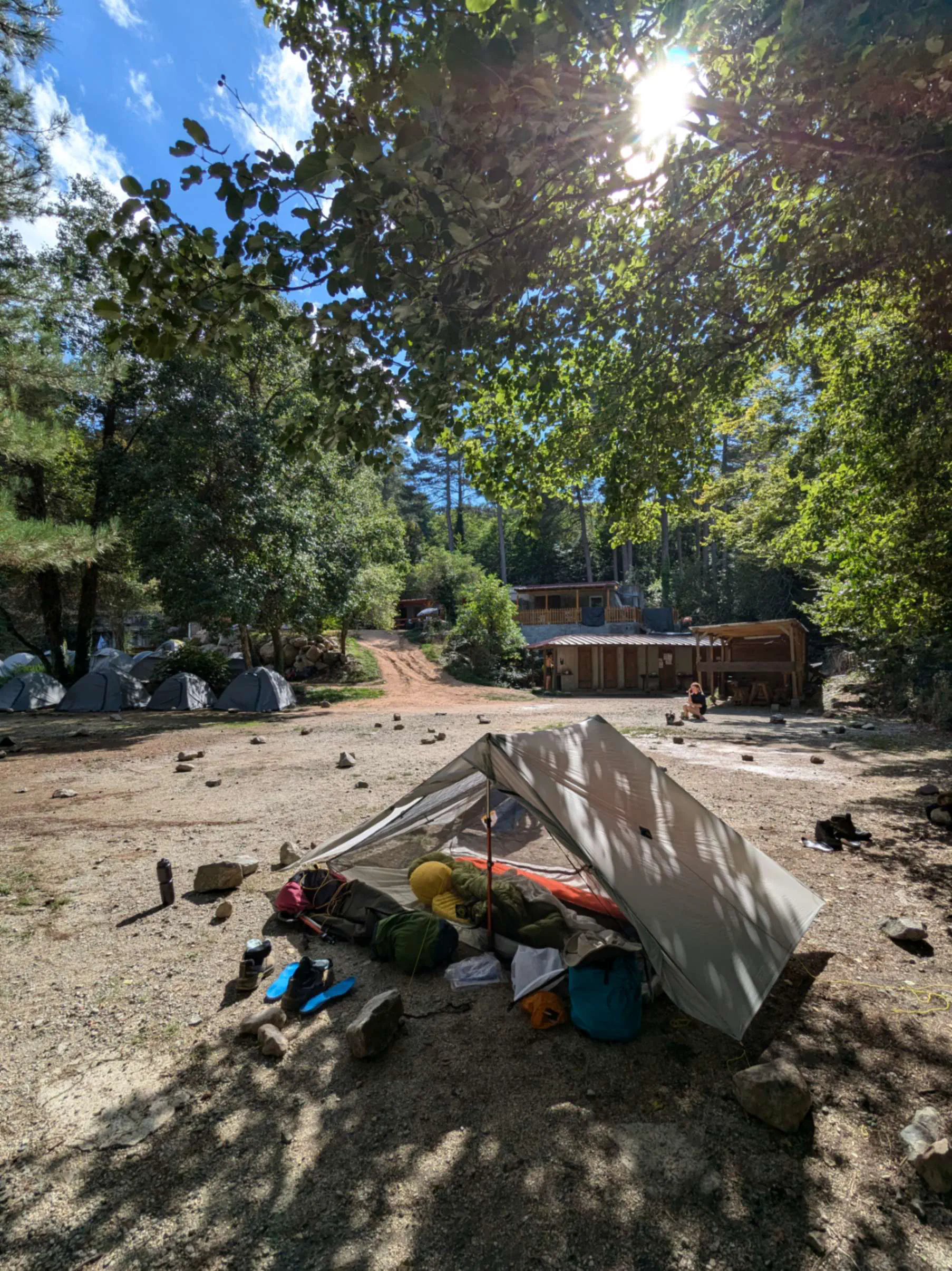 Le bivouac est animé, nous retrouvons de nombreuses connaissances et buvons le coup. Sur les personnes parties d’Ortu avec nous, ils ne sont plus nombreux désormais. Par chance, un randonneur me donne l’un de ses bâtons, après en avoir racheté une paire. William à les pieds en piteux état, mais qu’importe, nous sommes bien décidés à mener à bien ce voyage !