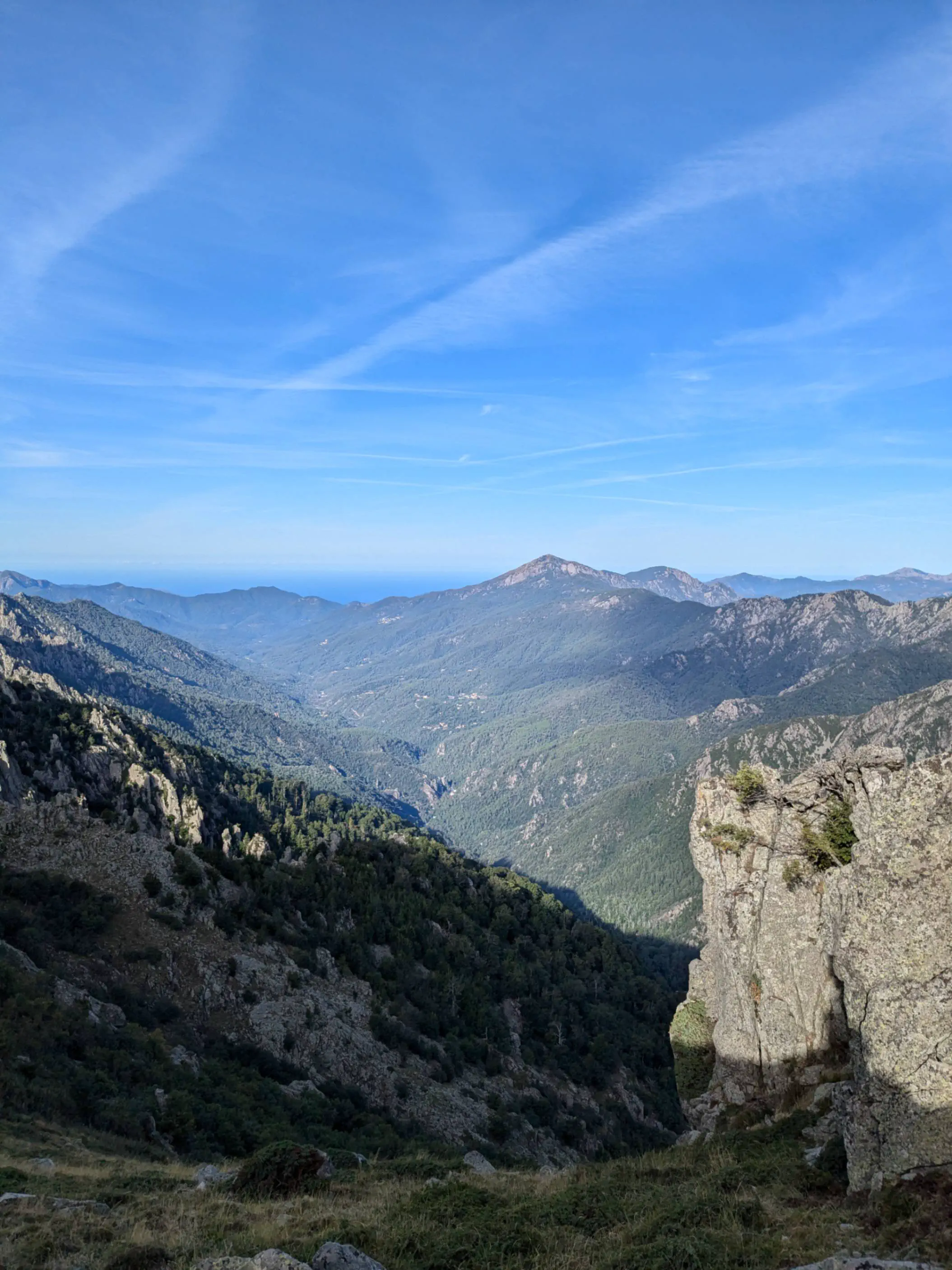 Après une courte pause, nous attaquons la montée majeure de la journée, sur les contreforts du Monte d’Oru. La montée est aussi plaisante que la descente longue et monotone. En fin d’étape, dans un moment d’inattention, je chute sur une dalle de pierre lisse et casse l’un de mes bâtons de randonnée. Nous finissons à bout, heureux d’être arrivés à ce point intermédiaire de notre traversée.