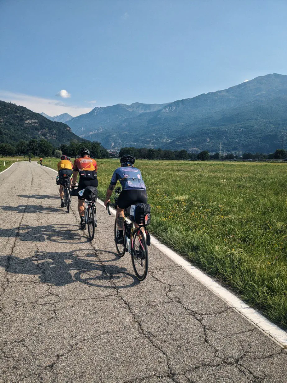 Je prends le groupe de tête qui me traîne à 30 de moyenne vers Aoste avant de me perdre.