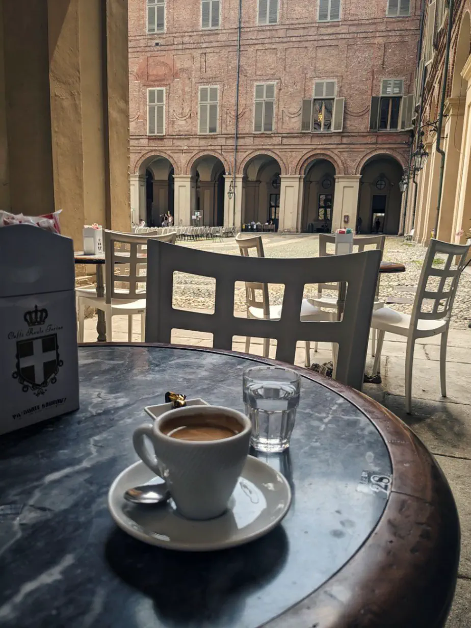 À la suite de cette pause gustative douteuse, je me mets en route vers le grand Museo Reali au sein duquel je me régale d’un excellent caffè lungo à l’ombre des arcades.