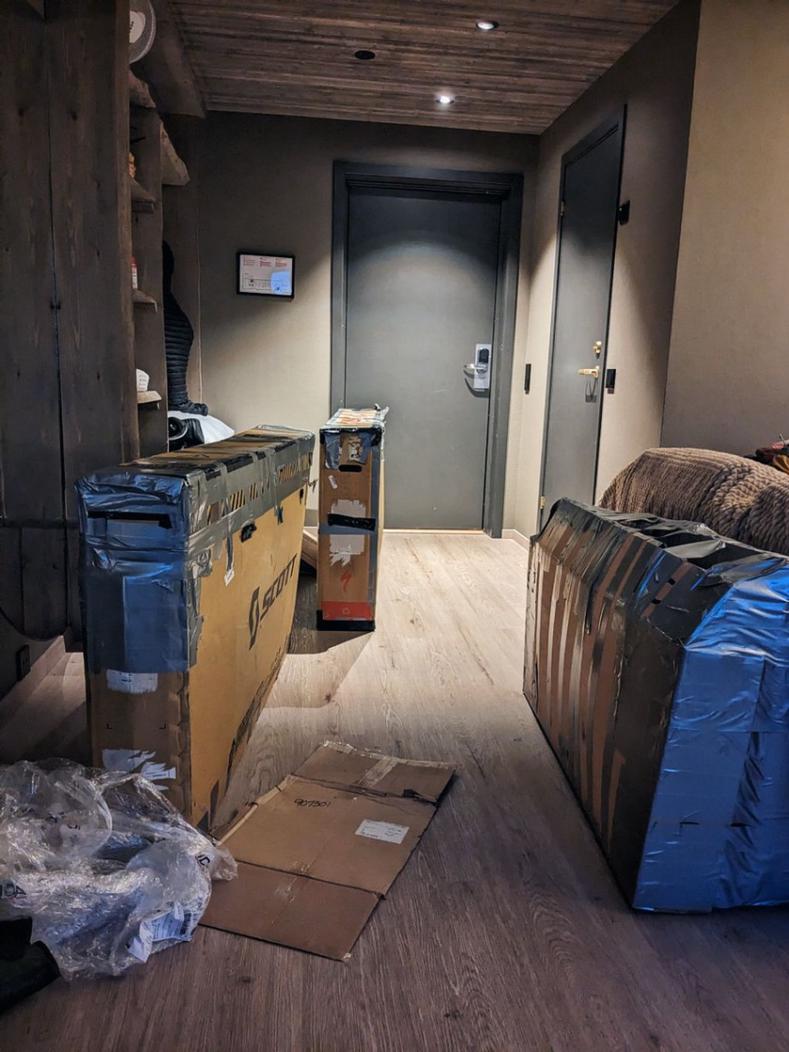 Une fois ce délicieux moment terminé, il est temps de traîner vers l’arrêt de bus - tant bien que mal - nos énormes cartons qui contiennent nos pauvres vélos en mille morceaux.