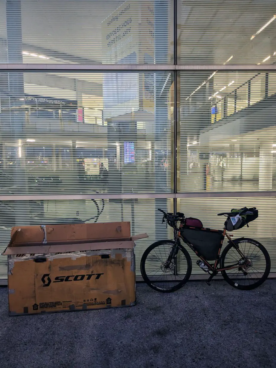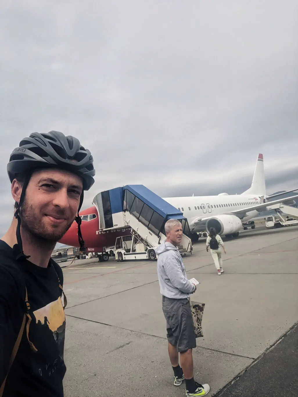 Aéroport, check-in, dépôt des vélos. Nous retrouvons d’autres participants de la NorthCape attendant leur vol, notamment Julien et Paulina avec qui j’avais eu la chance d’échanger quelques heures sur la route.