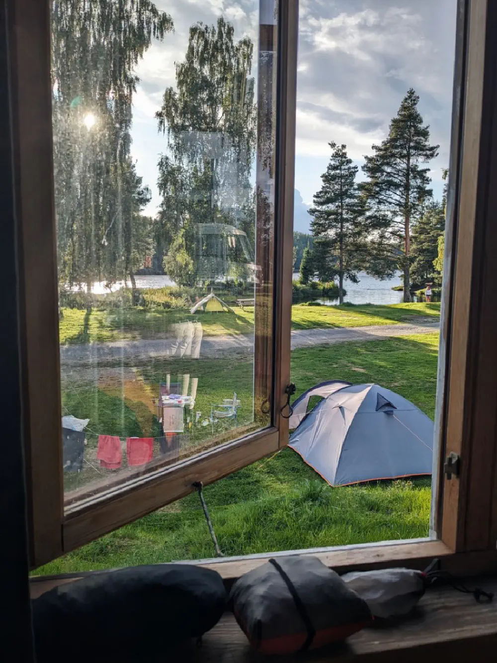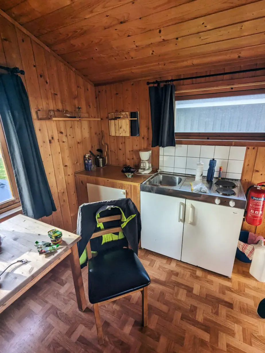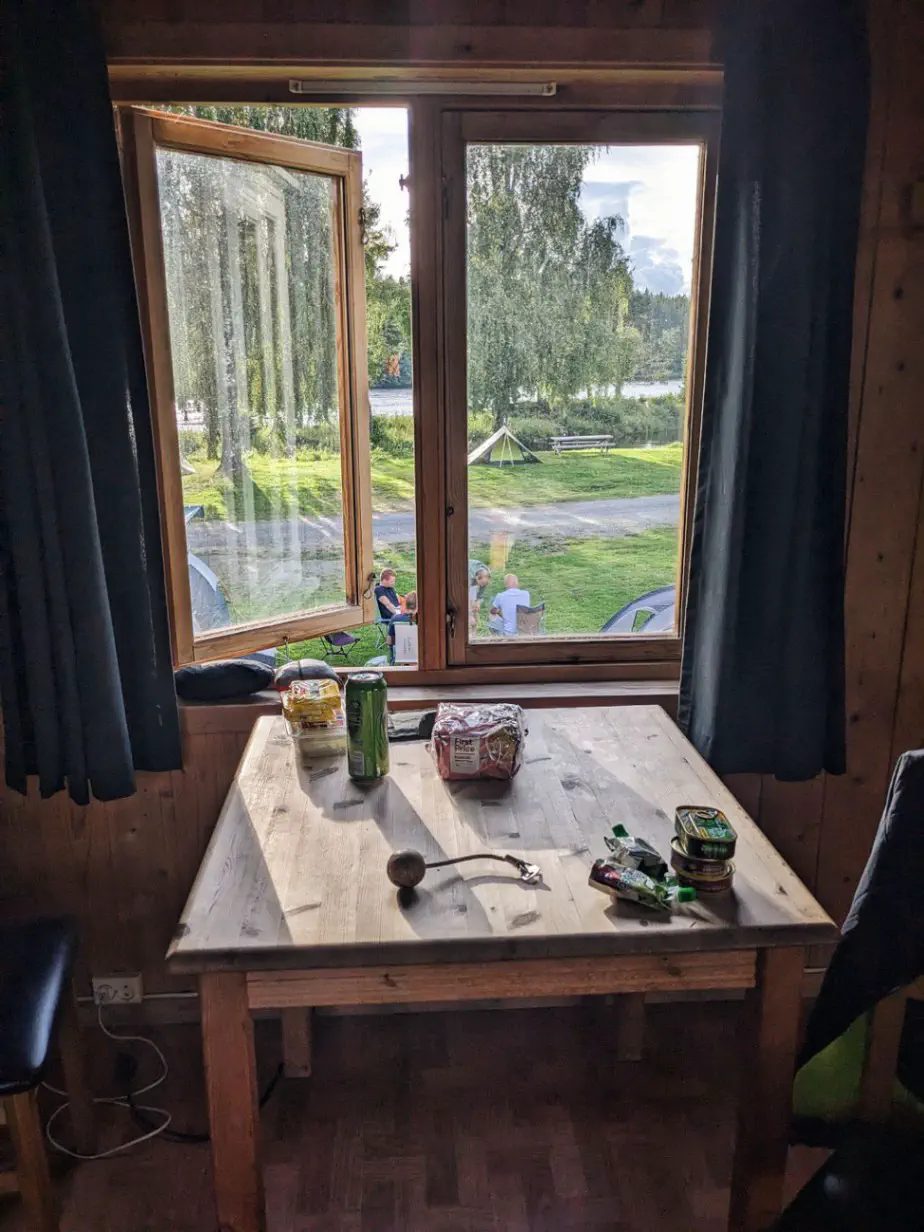 Le peu de route est avalé à une vitesse record. À peine le temps de faire quelques courses et nous voilà déjà au camping, où une charmante petite cabane nous attend.