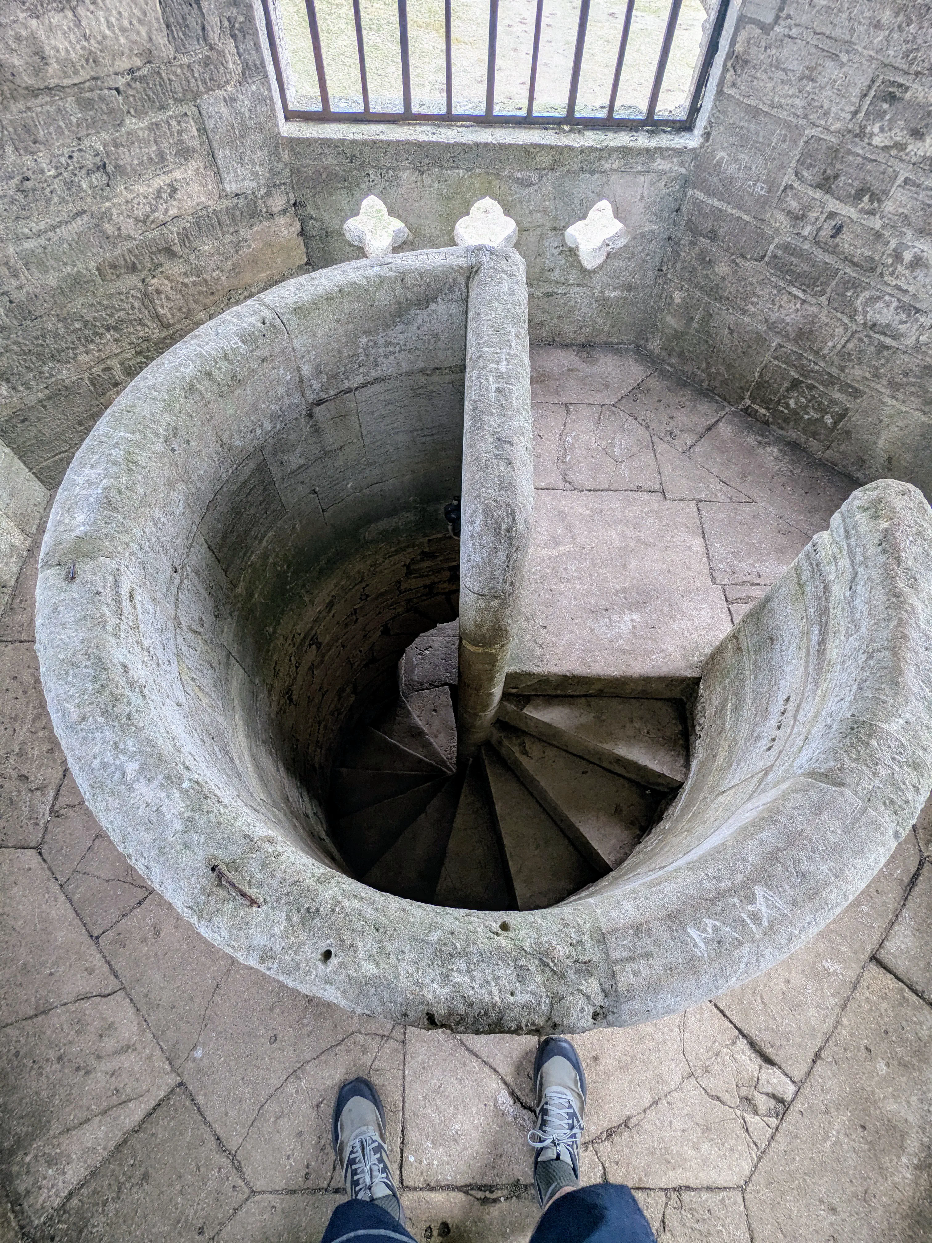 Nous continuons notre marche vers un monument étonnant, surplombant la ville de Wotton under Edge. Je monte et redescends les marches quatre à quatre pour profiter du magnifique panorama, avant d’entamer la longue descente vers le village où un café nous attend.