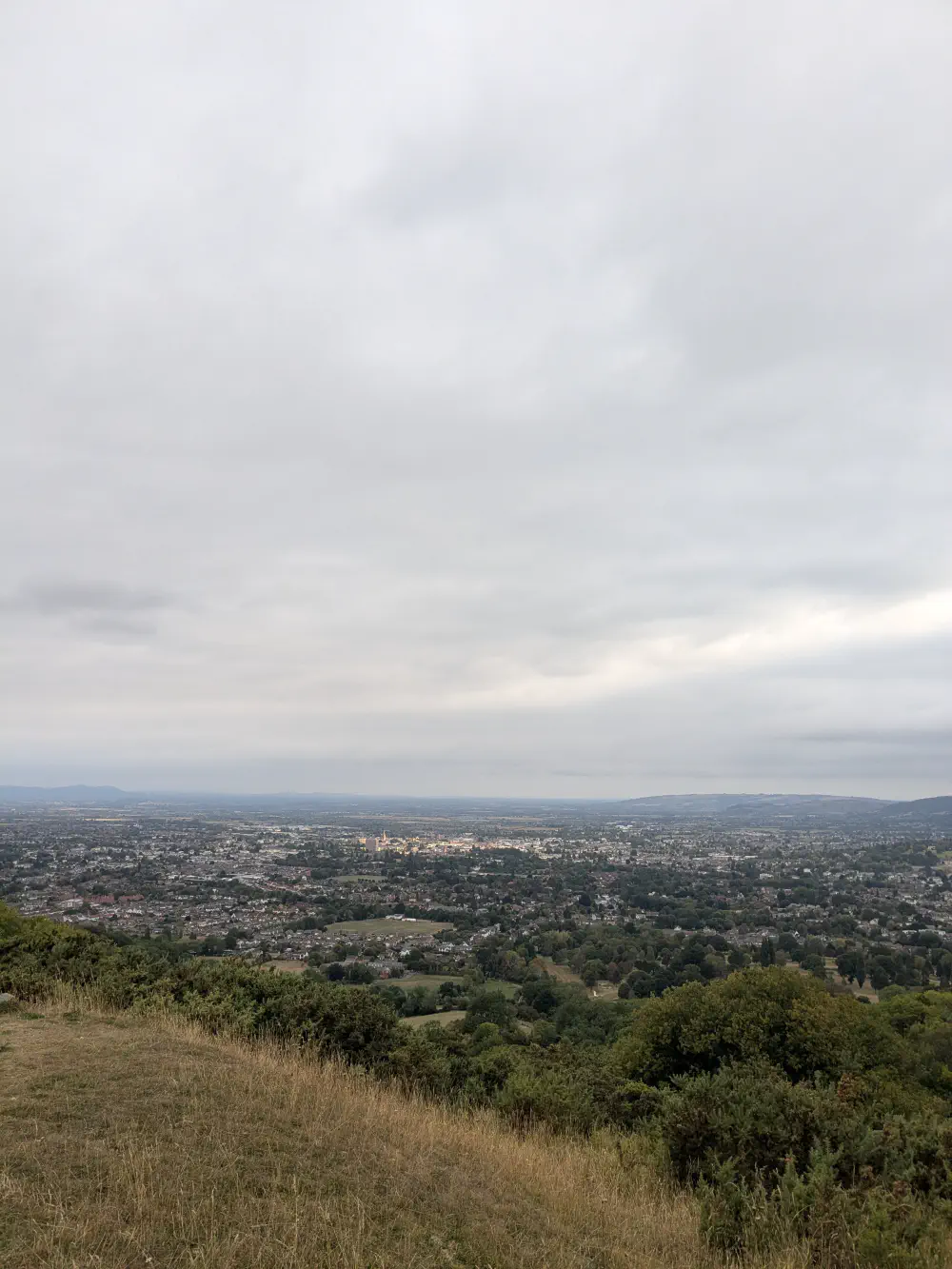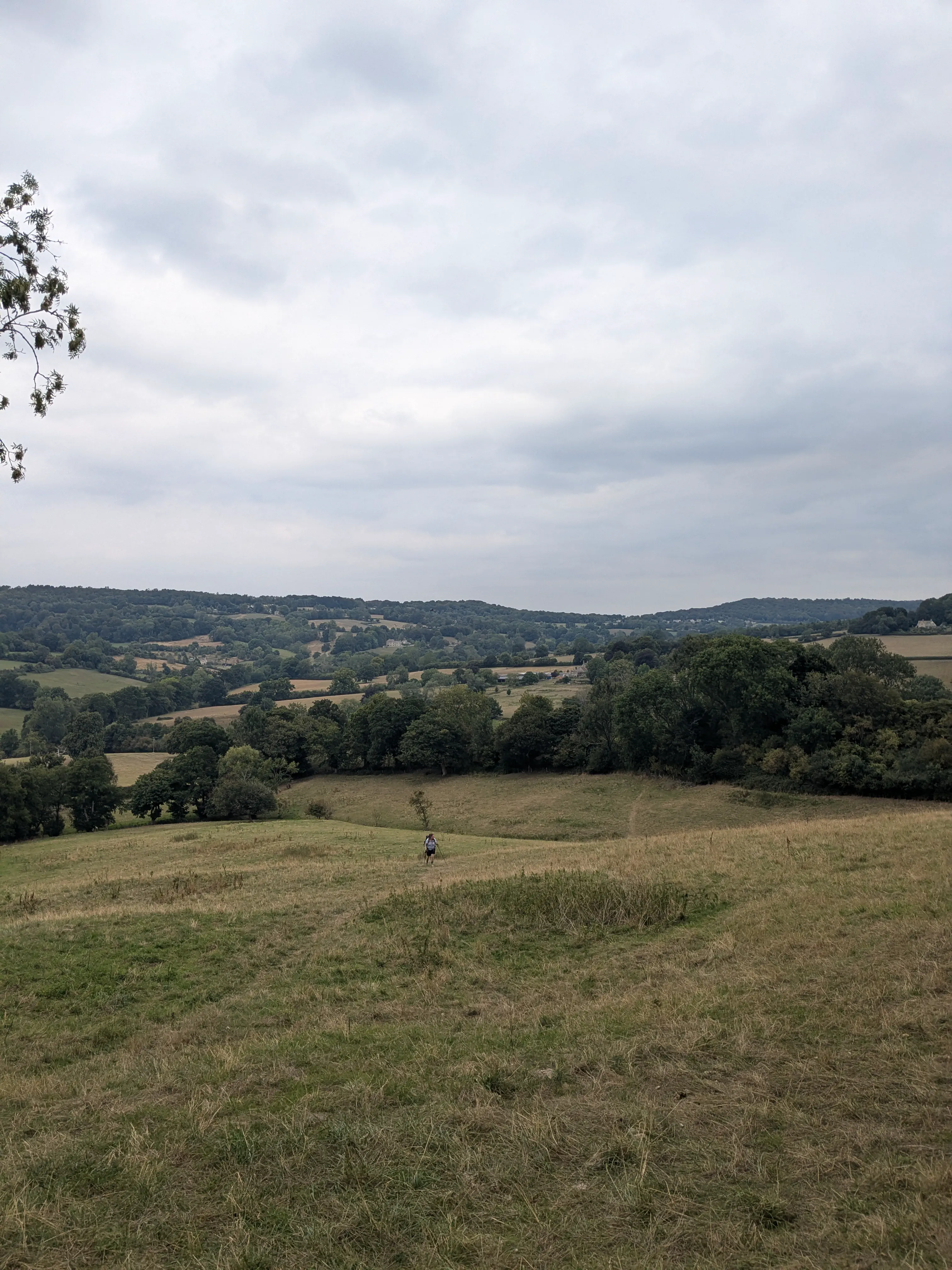 Lorsque l’heure du départ sonne, c’est malheureusement pour nous faire découvrir un triste paysage de champs moissonnés, entrecoupés de routes fréquentées. On monte rapidement sur une colline, profitant ainsi de la jolie vue sur le bassin de Gloucester.