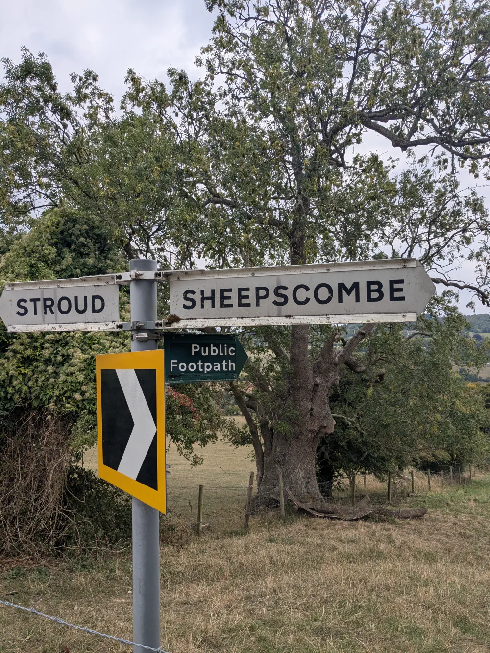 Alors que nous parcourons de nouveau un green de golf, nous décidons de prendre un petit raccourci pour rejoindre le camping, plutôt que de faire le grande boucle par Painswick. Bien nous en prend car ce chemin s’avère fort charmant et nous pouvons de nouveau profiter de la belle campagne anglaise.