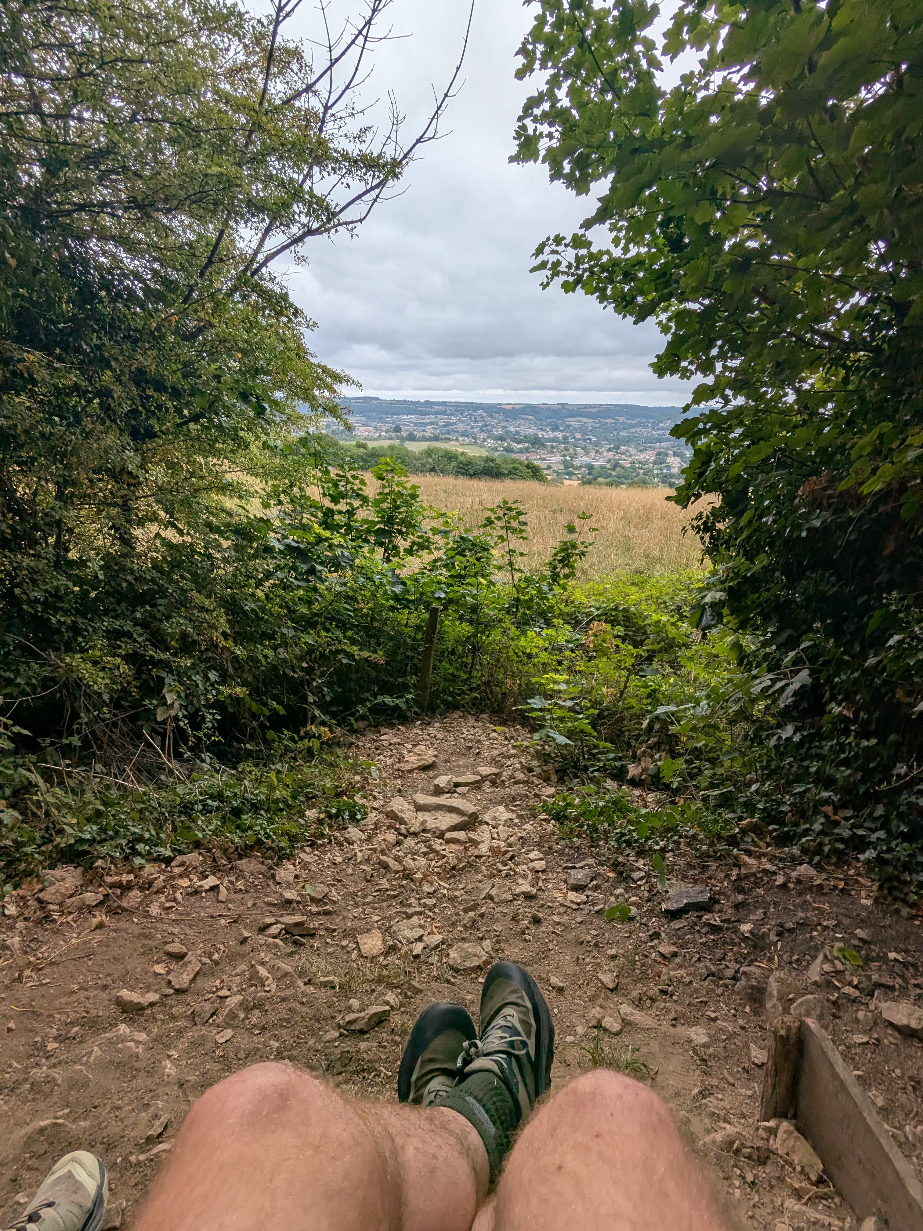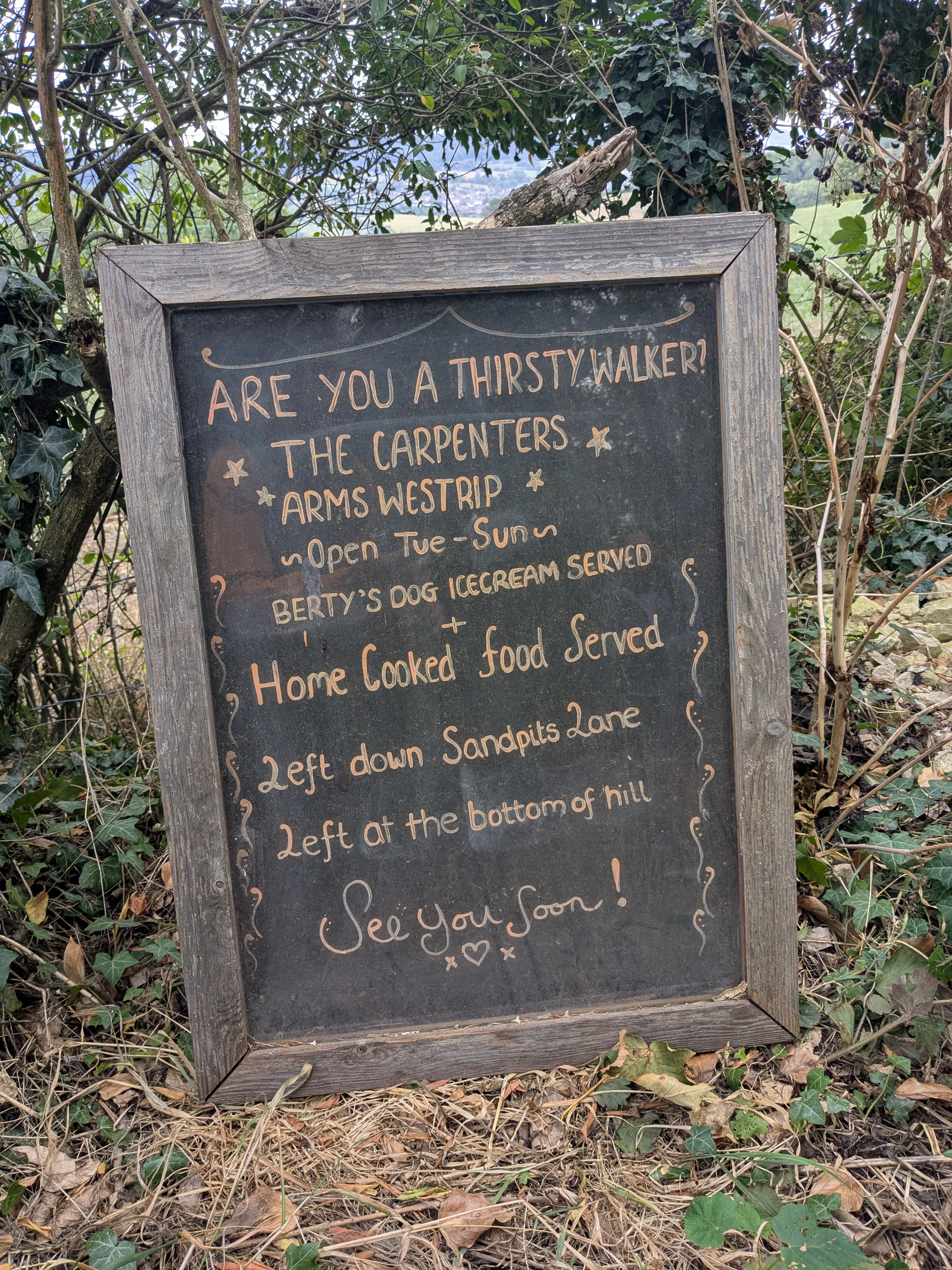 Le descente vers Uley est abrupte, mais qu’importe, nous savons qu’une auberge nous y attend et pas des moindres, selon le témoignage d’un vieil anglais du cru (et de son lévrier) : “la meilleure du coin”.