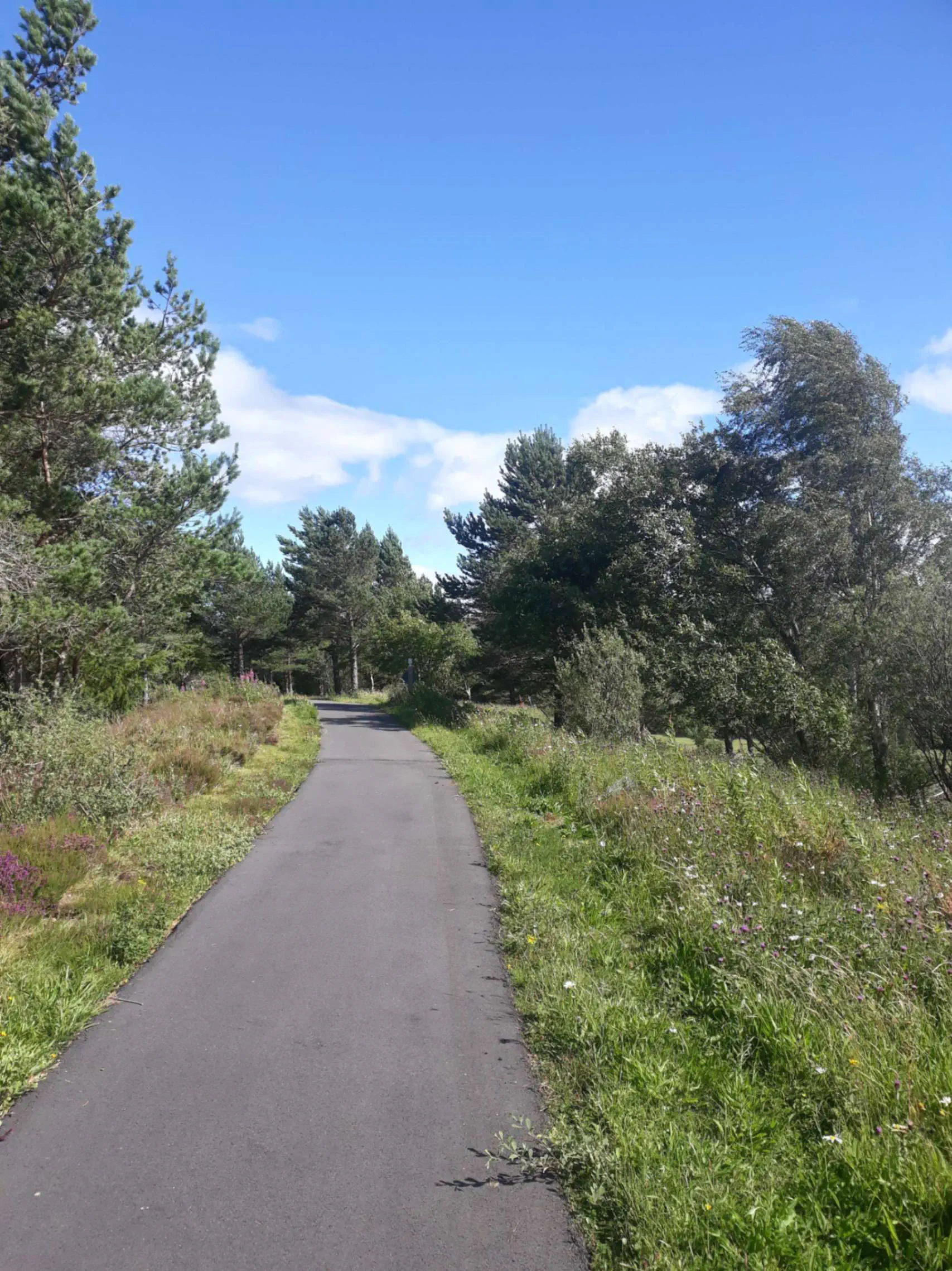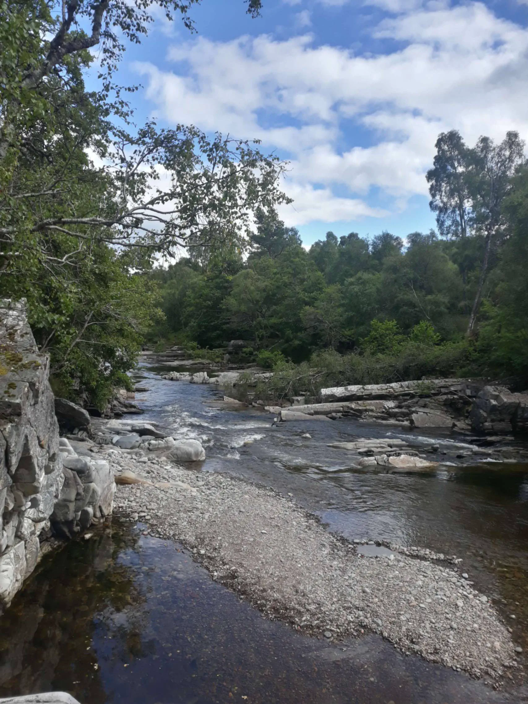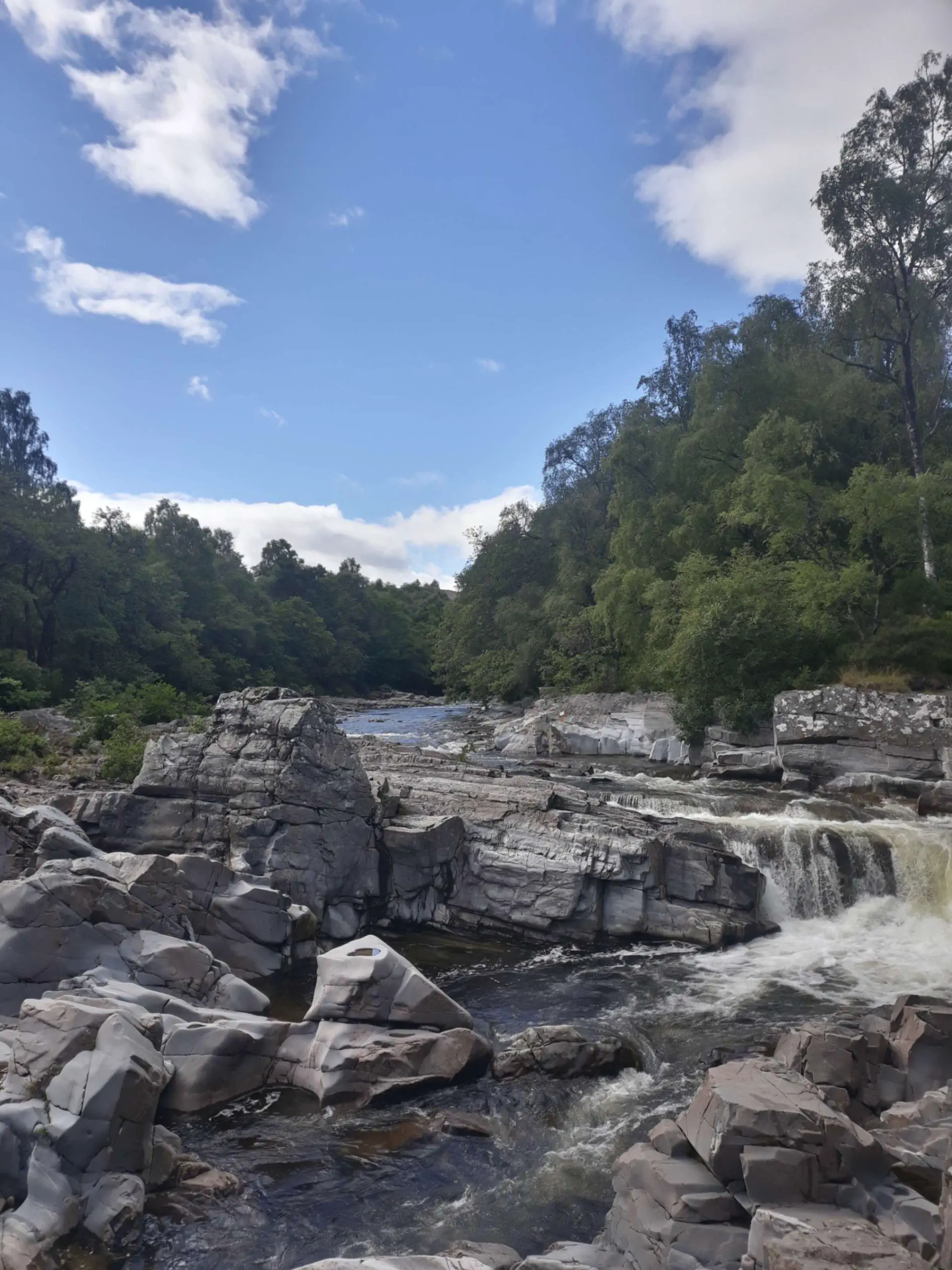 Et quel passage ! Sous un ciel magnifique - lumineux, mais chargé de gros nuages lourds - je passe enfin dans la partie sauvage de l’Écosse. Des collines à perte de vue, de grandes rivières grondantes, des parterres de fleurs à n’en plus finir.