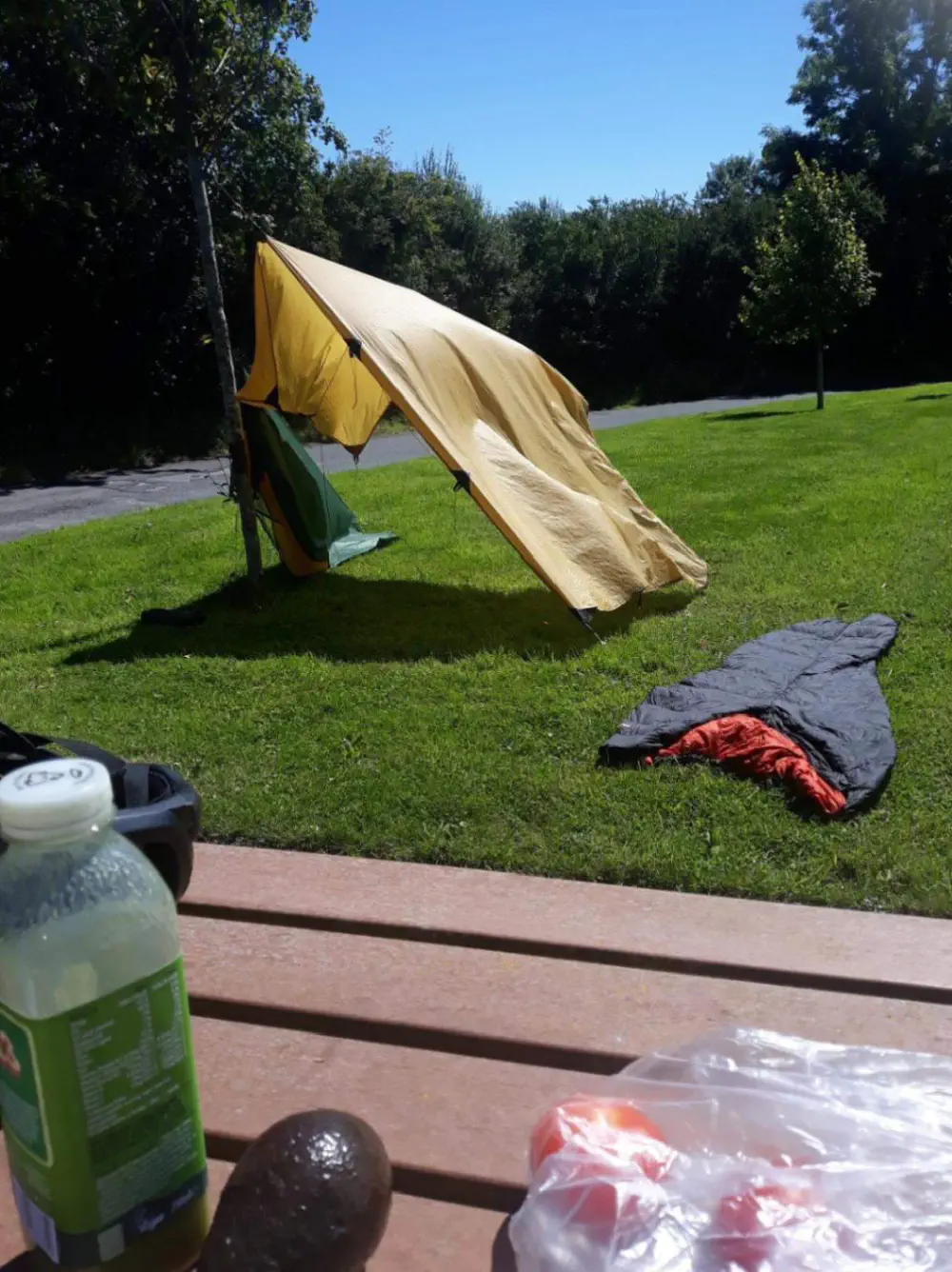 J’en profite pour faire sécher toutes mes affaires ; je vais perdre du temps à tout ranger, mais je ne supporte plus l’humidité et l’odeur qui va avec. Je commets l’erreur classique lorsque je suis fatigué : je mange trop.