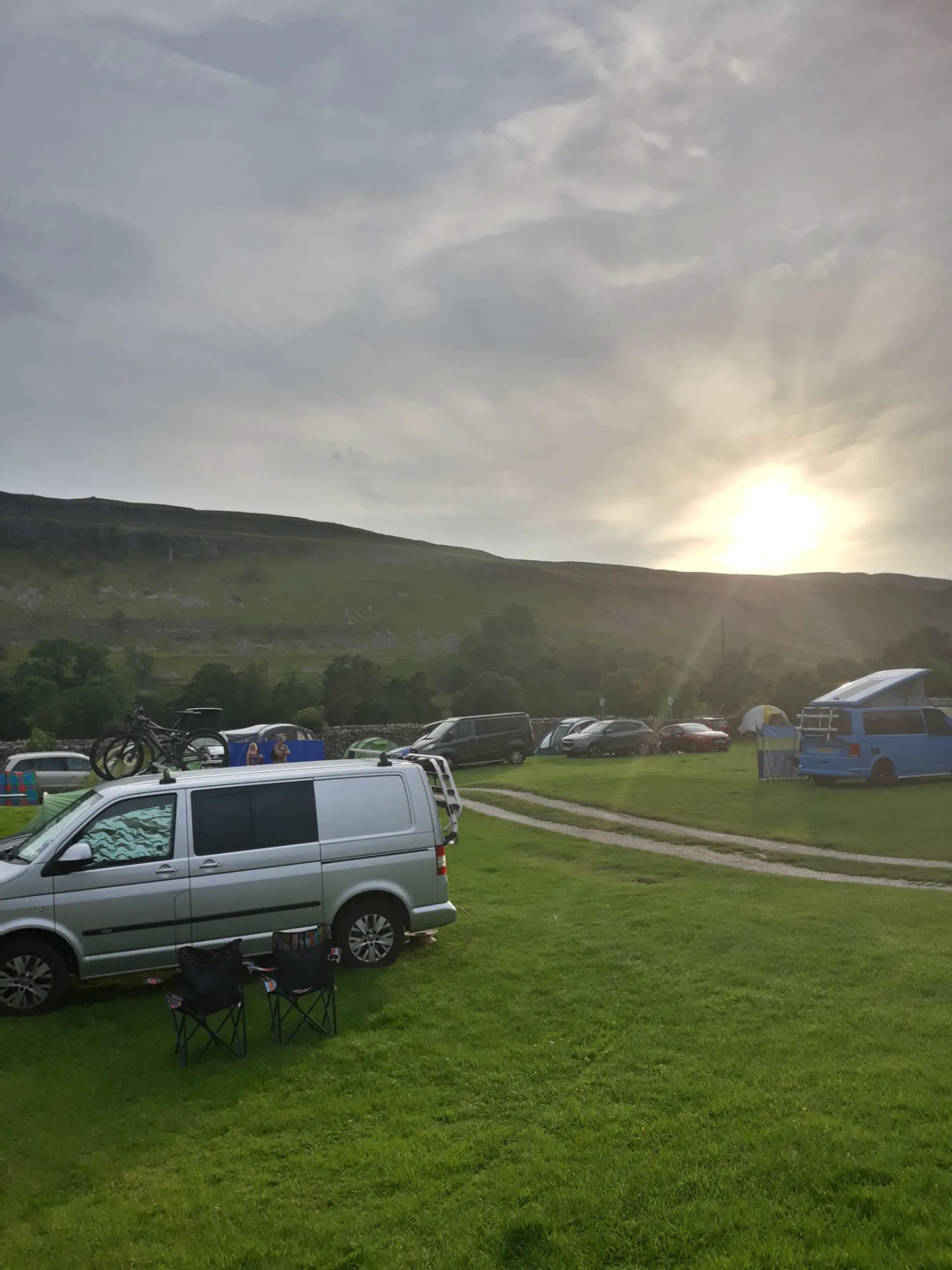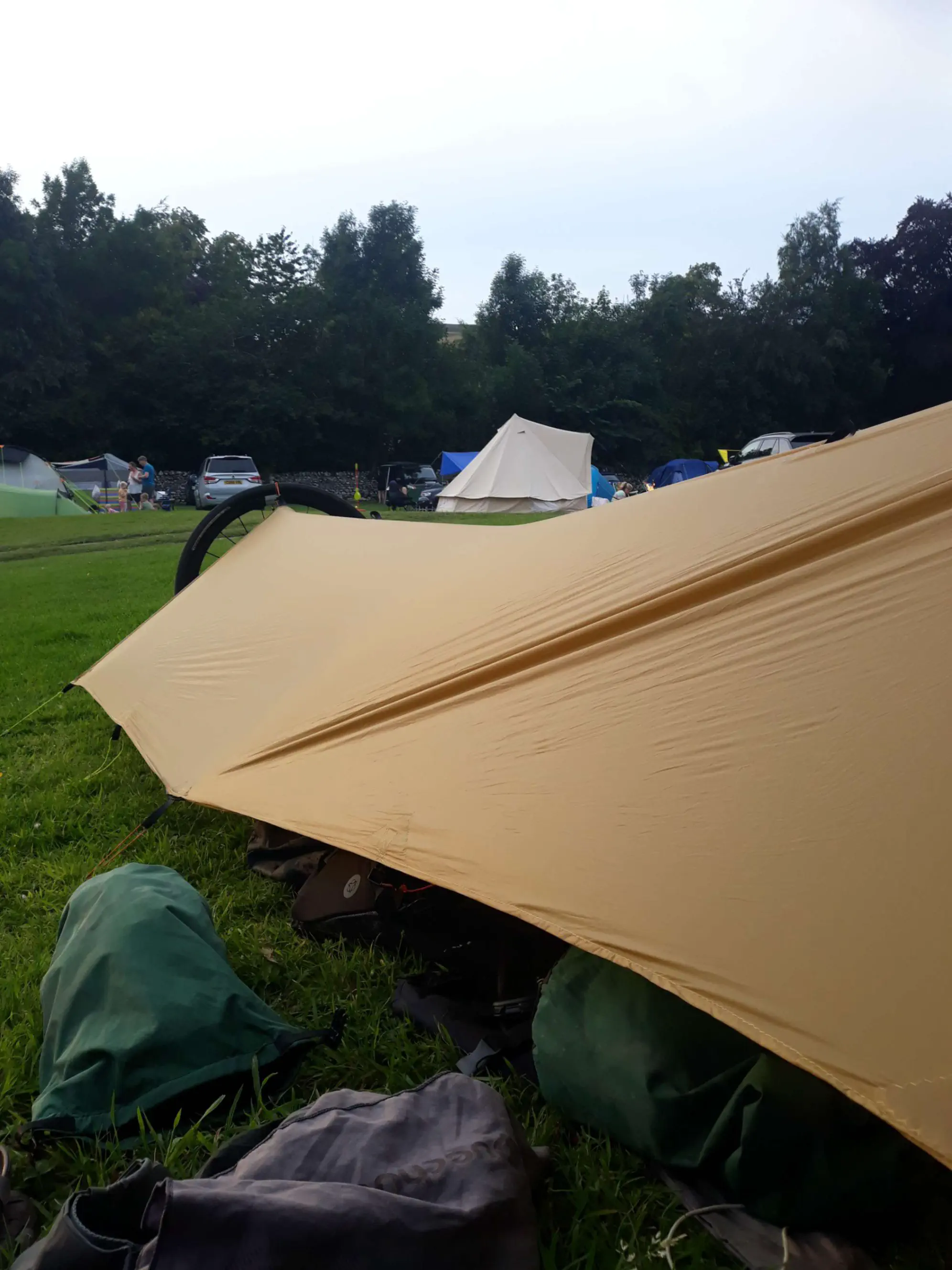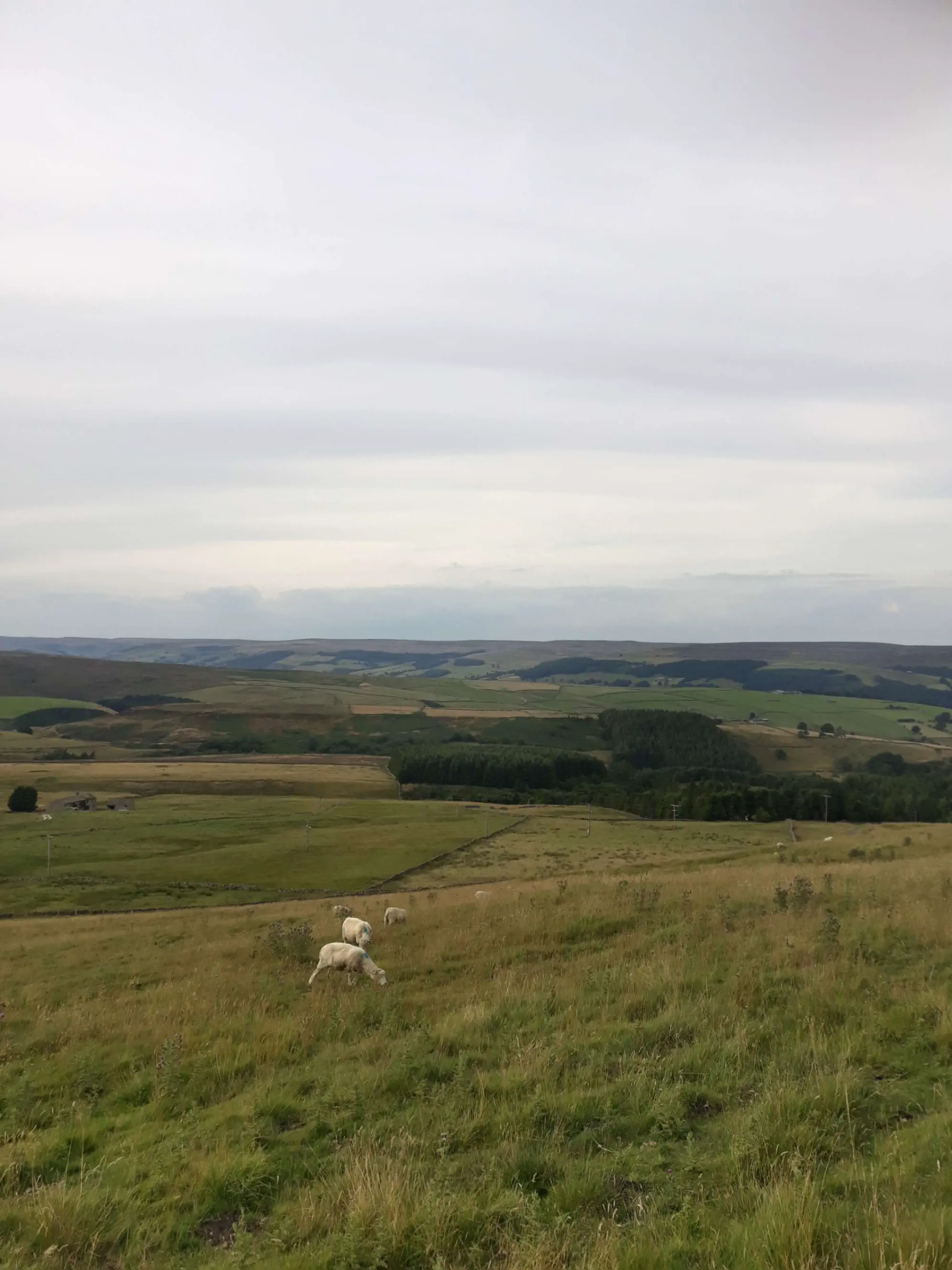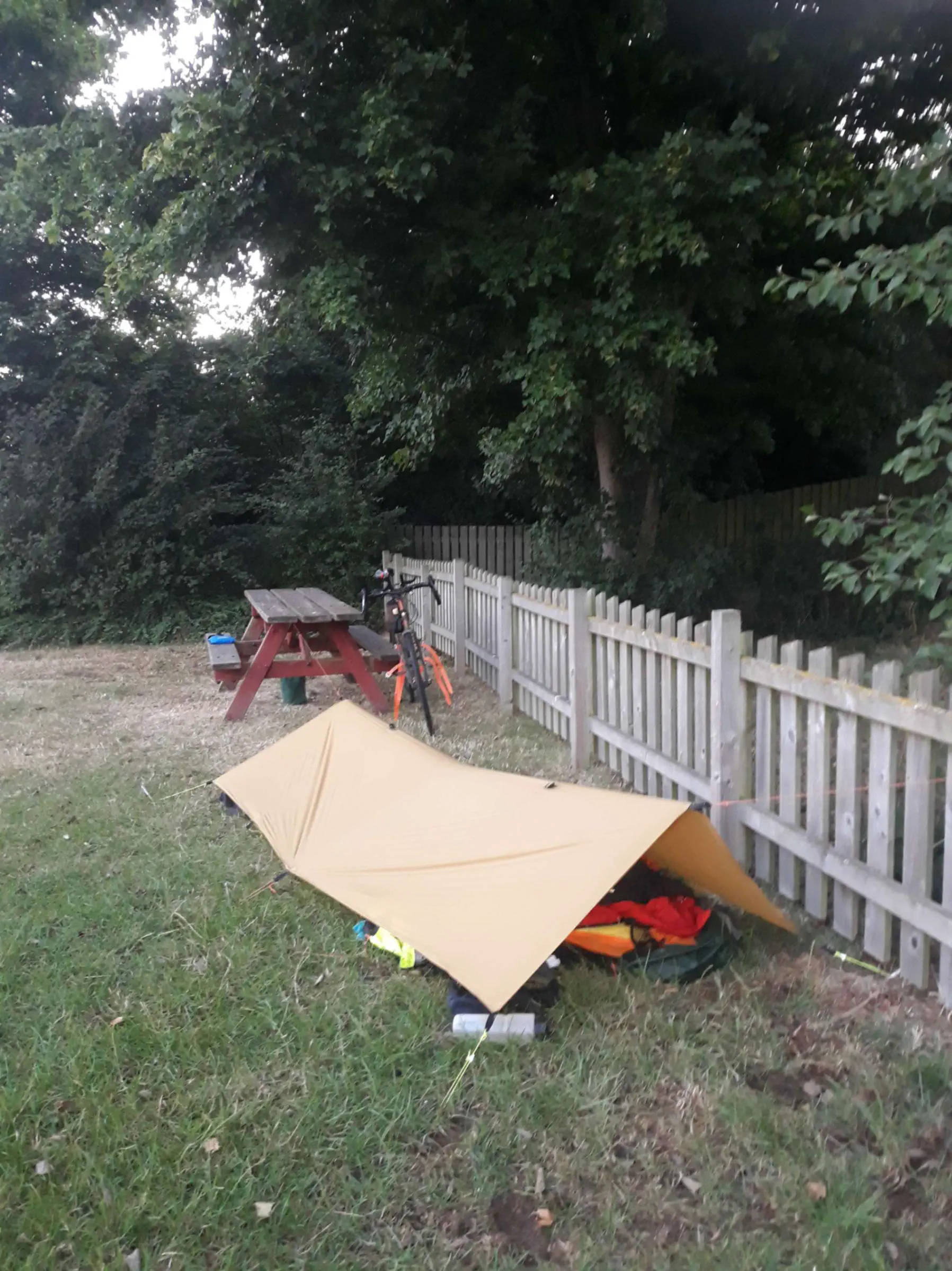 Je n’aime pas trop cette sensation au moment de me rhabiller puis de repartir. Les articulations craquent, on frissonne. Je prends le temps de préparer mon premier café du voyage, un plaisir simple et toujours renouvelé. Enfin, vers 7h c’est le départ. Il faut bien le dire : les 140 premiers km de la journée sont décevants. C’est très plat, je passe souvent pas des voies vertes qui m’obstruent la vue… pas terrible. Heureusement la météo, elle, est de la partie ! Pour la première fois, j’ai trop chaud et je peux retirer mes jambières et manchettes. Au détour d’une de mes nombreuse pause sandwich, je sors tout mon barda à l’air et en 20 minutes, tout est sec ! C’est un vrai soulagement car mon sac est en duvet et l’humidité viendrait sans problème à bout de ses capacités isolantes. Enfin, passée cette premier moitié de journée, me voilà, au détour d’une côte interminable à 16%, dans le Yorkshire ! Et voici enfin l’Angleterre que j’étais venu chercher qui se découvre. Des pâturages à perte le vue, le son des cloches, des collines bleues noyées dans la brume. La route est très dure, d’ailleurs il a beaucoup de cyclistes, parfois des pelotons. Mais chaque montée est la promesse d’un panorama toujours plus beau, à mesure que je me rapproche de la côte et du Lake District. Finalement, au kilomètre 193, j’aperçois du haut de la route où je suis perché, un minuscule camping “à la cool” dans la bourgade -au nom évocateur- de Kettelwell. Je ne résiste pas, même si physiquement je me sens encore très bien. Le bivouac c’est difficile malgré tout, vu l’effort fourni en journée. La perspective d’une bonne douche l’emporte. L’accueil est fermé quand j’arrive, sauf que cette fois, surprise, il y a un numéro et le patron que j’ai au bout du fil, m’indique que je pourrais laisser dix livres dans la boite aux lettres. Enfin un peu de simplicité ! (Et ce n’est pas très cher, pour un camping anglais). J’essayerais de rattraper le retard accumulé en prenant de petits raccourcis dans les jours à venir, histoire de tenir mon planning, qui est serré ! Demain s’annonce très dur. Un cycliste rencontré à Newport m’a prévenu : les pires dénivelés seront dans le Lake District, dit-il après avoir fait l’expérience de l’Écosse. Je vais donc devoir prendre mon courage à deux mains, car les jambes ont malgré tout souffert dans les cols aujourd’hui.
