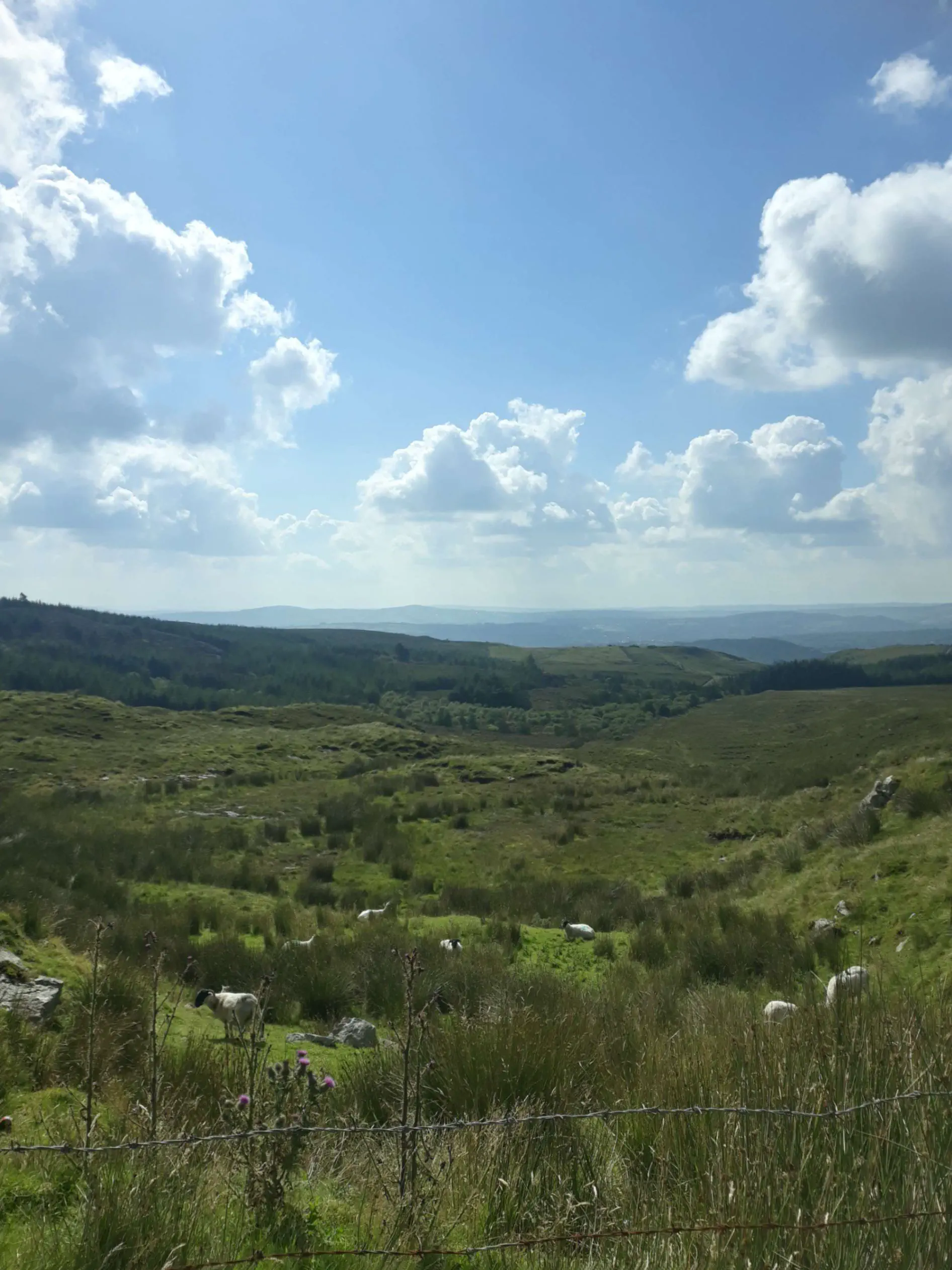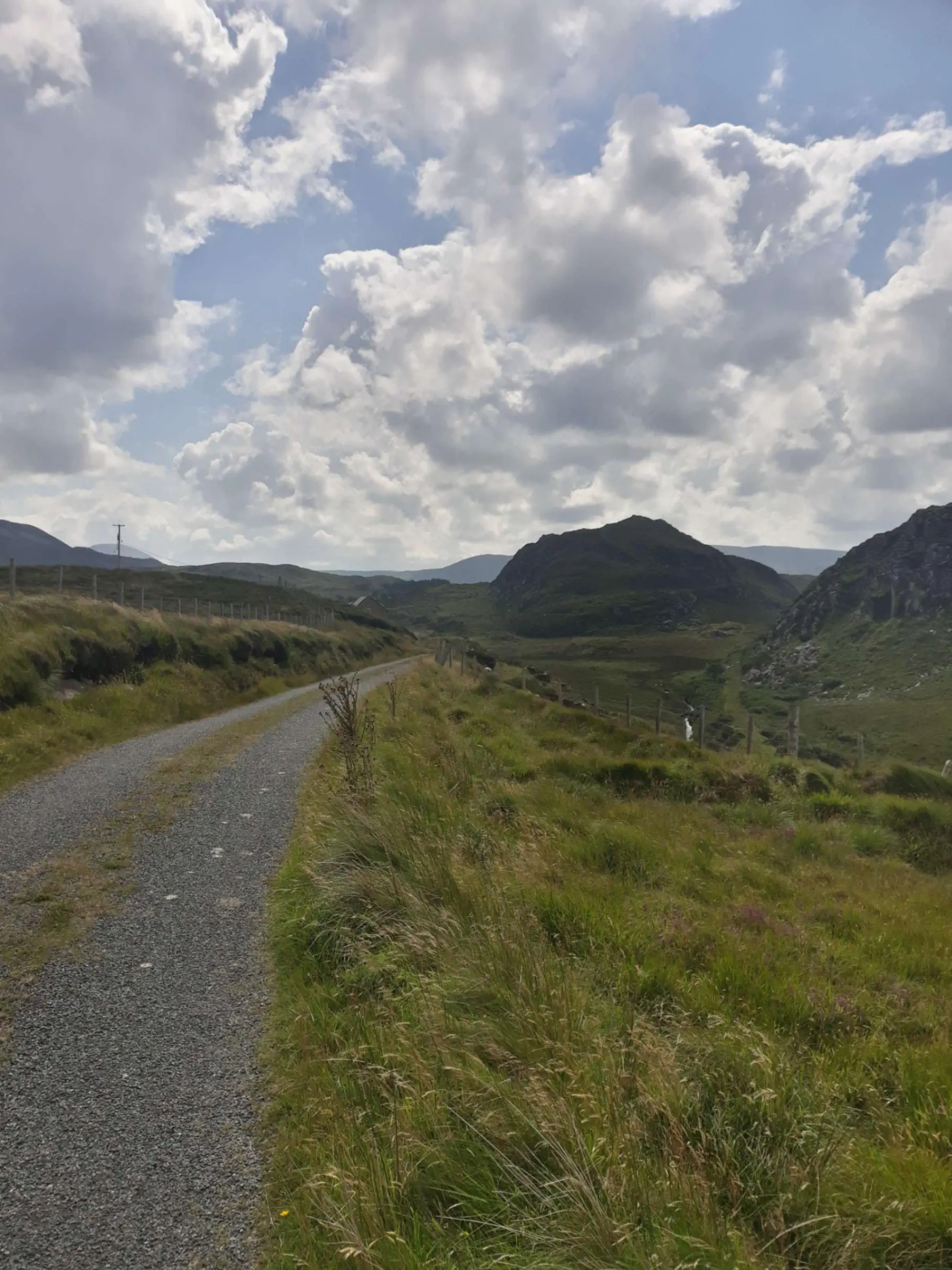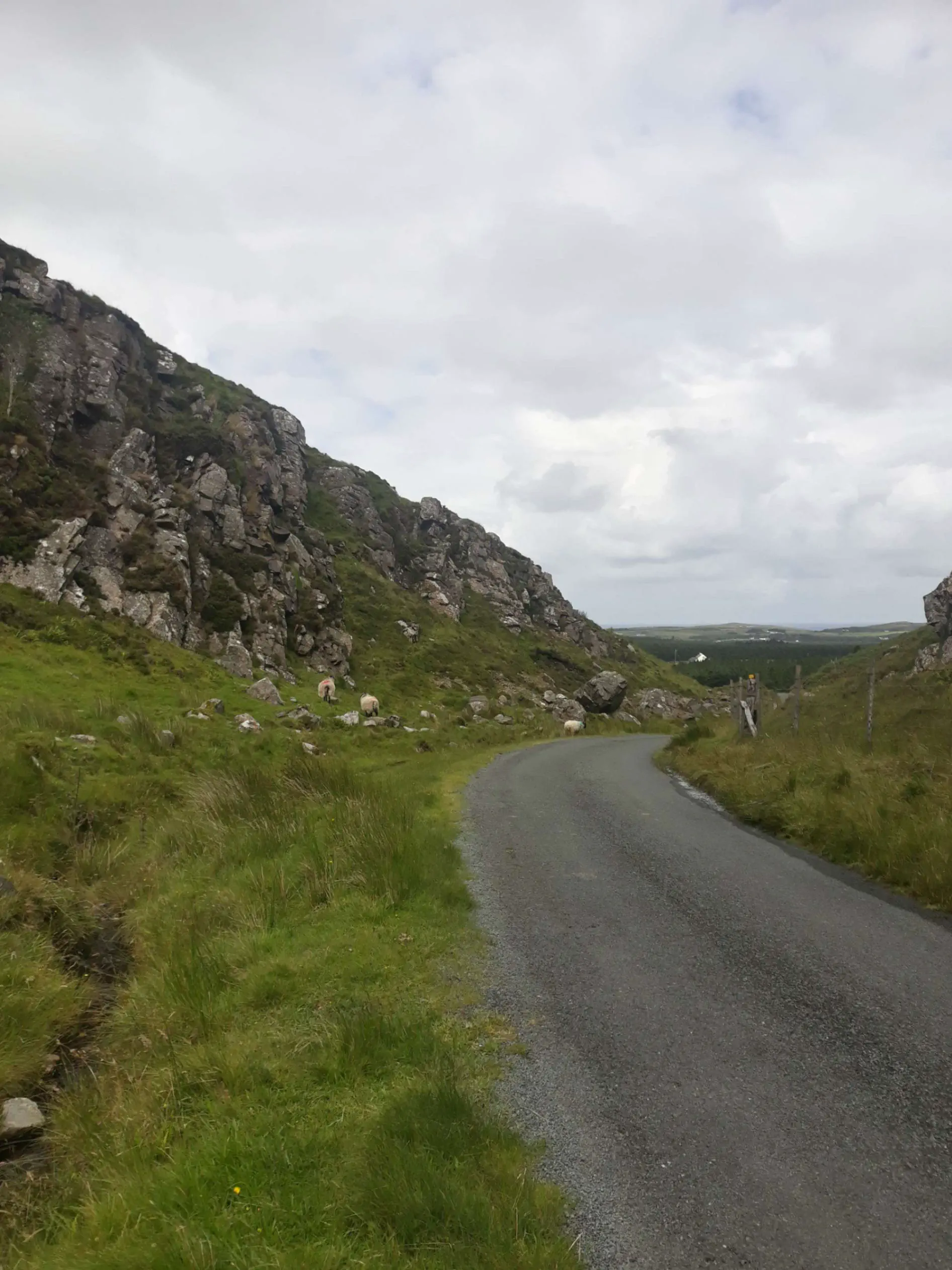 Et l’itinéraire ne m’épargne pas. Letterkenny est dans une cuvette, on attaque tout de suite par 3 km de montée pour sortir de la ville. Après un court passage de plat, c’est reparti pour de la montée et cette fois c’est du sérieux.