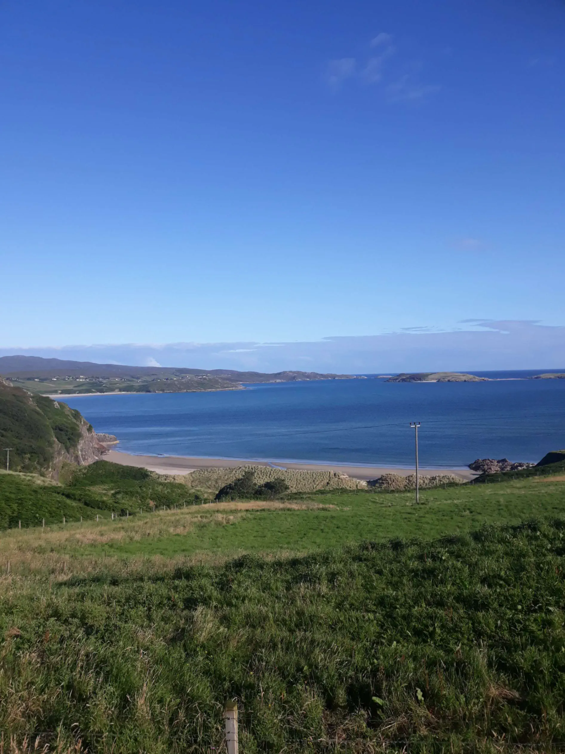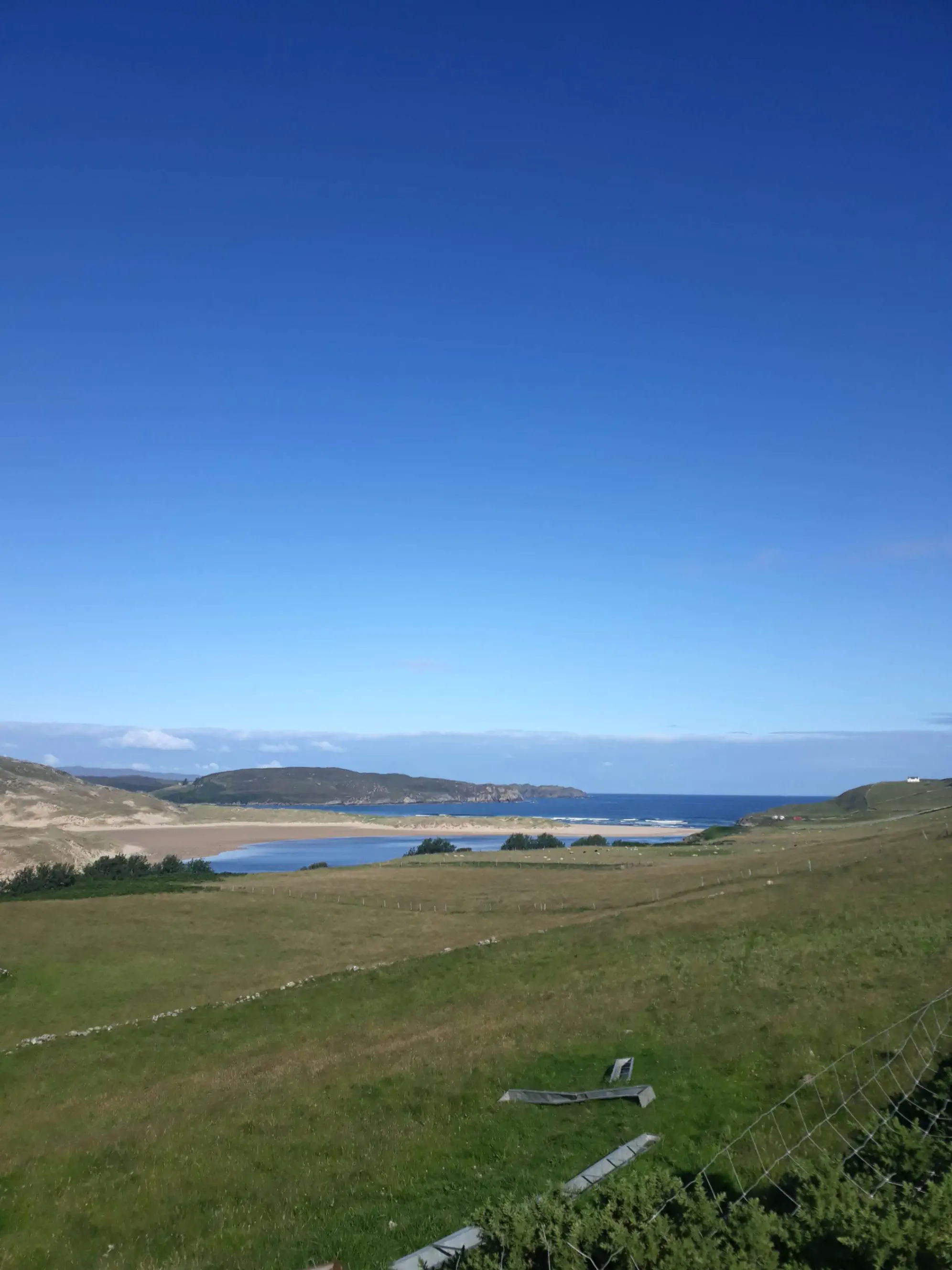 J’arrive rapidement sur la célèbre North Coast 500, une route qui sillonne les highlands, très prisée des motards et des cyclistes de tous poils. La route est effectivement magnifique, suivant le tracé des falaises. Je découvre des plages de sable dorée et comme dirait mon cousin surfeur, “ça tube” !