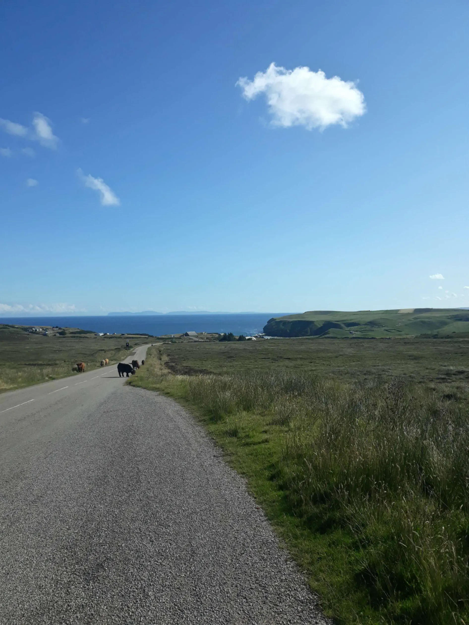 Moi, je vais sûrement dormir, tout simplement. Arrivée prévue vers 19h30, j’irai tranquillement atterrir quelque par pour dormir et repartirai demain, à peu près conformément à mes plans initiaux. Le bus suit la NC500 vers le sud, je profite du paysage, sans l’effort, que demander de plus ?