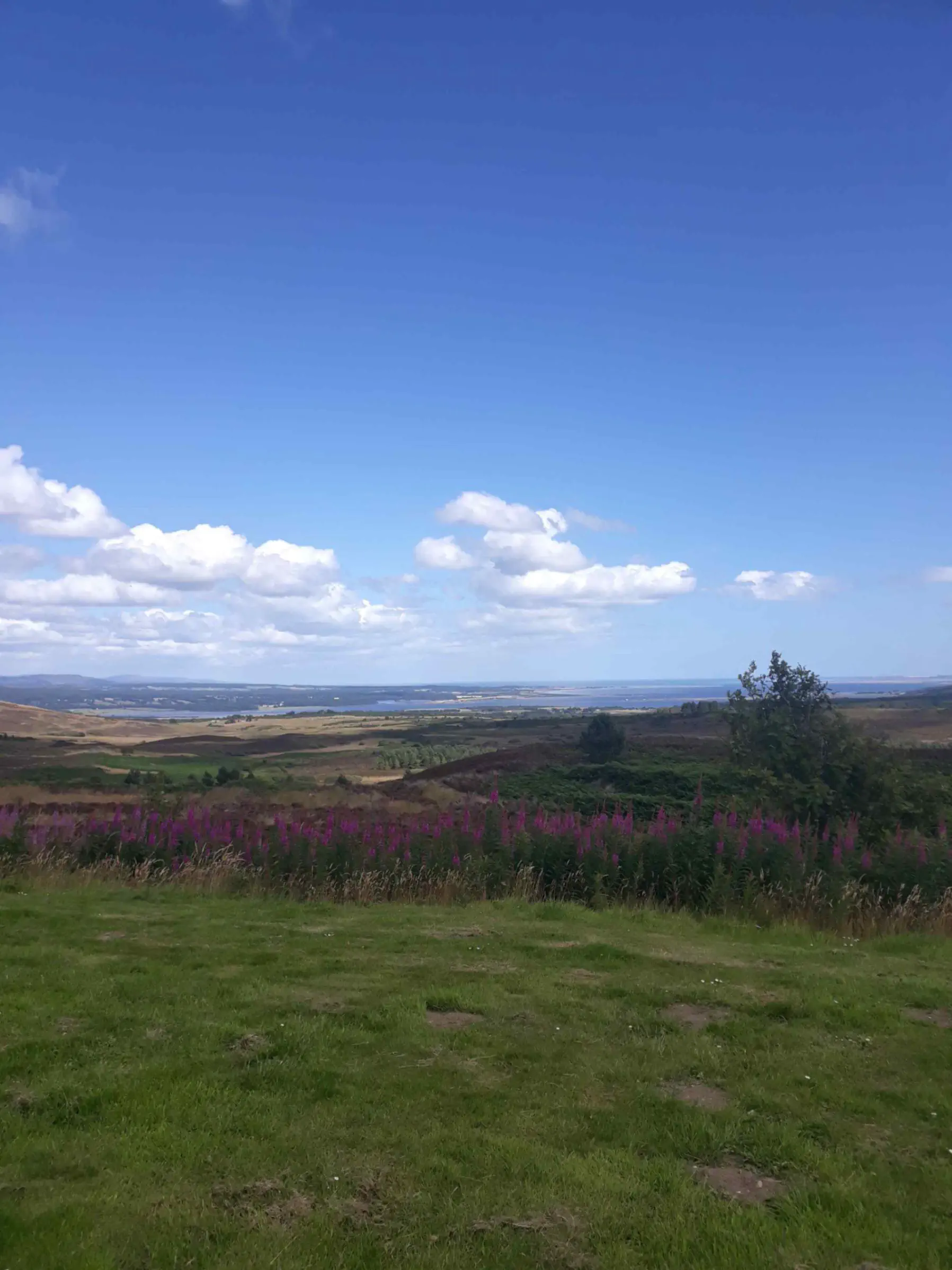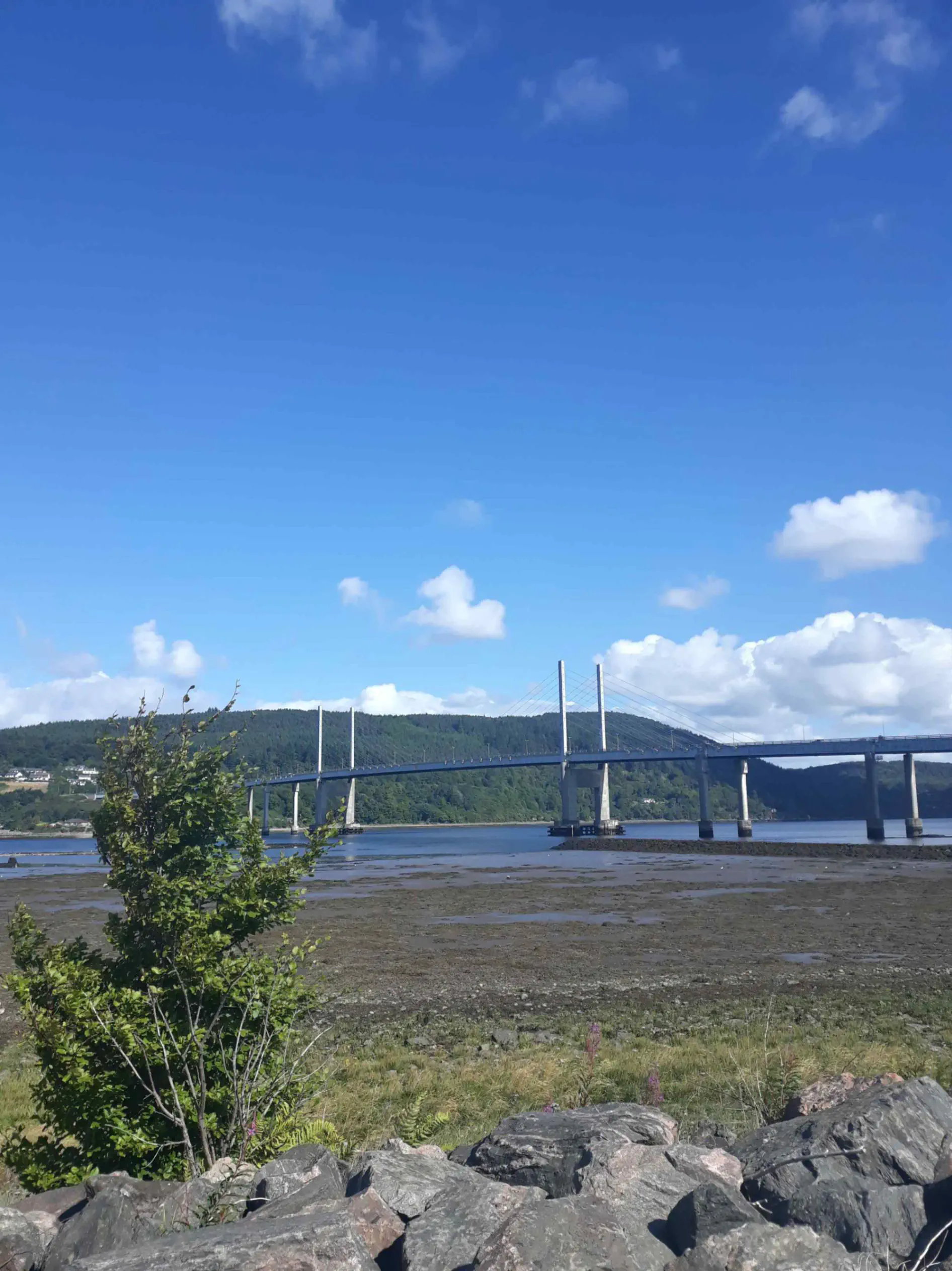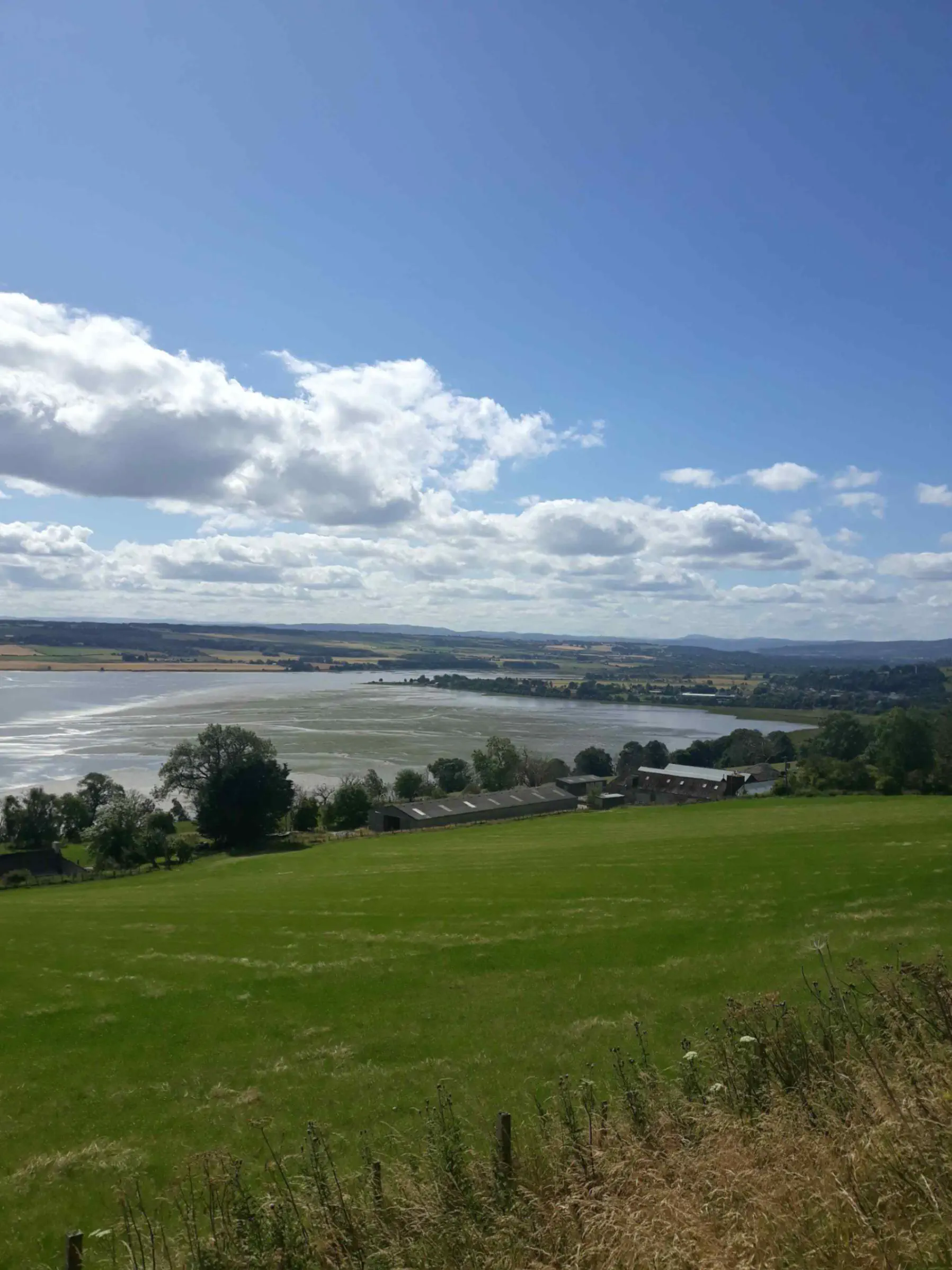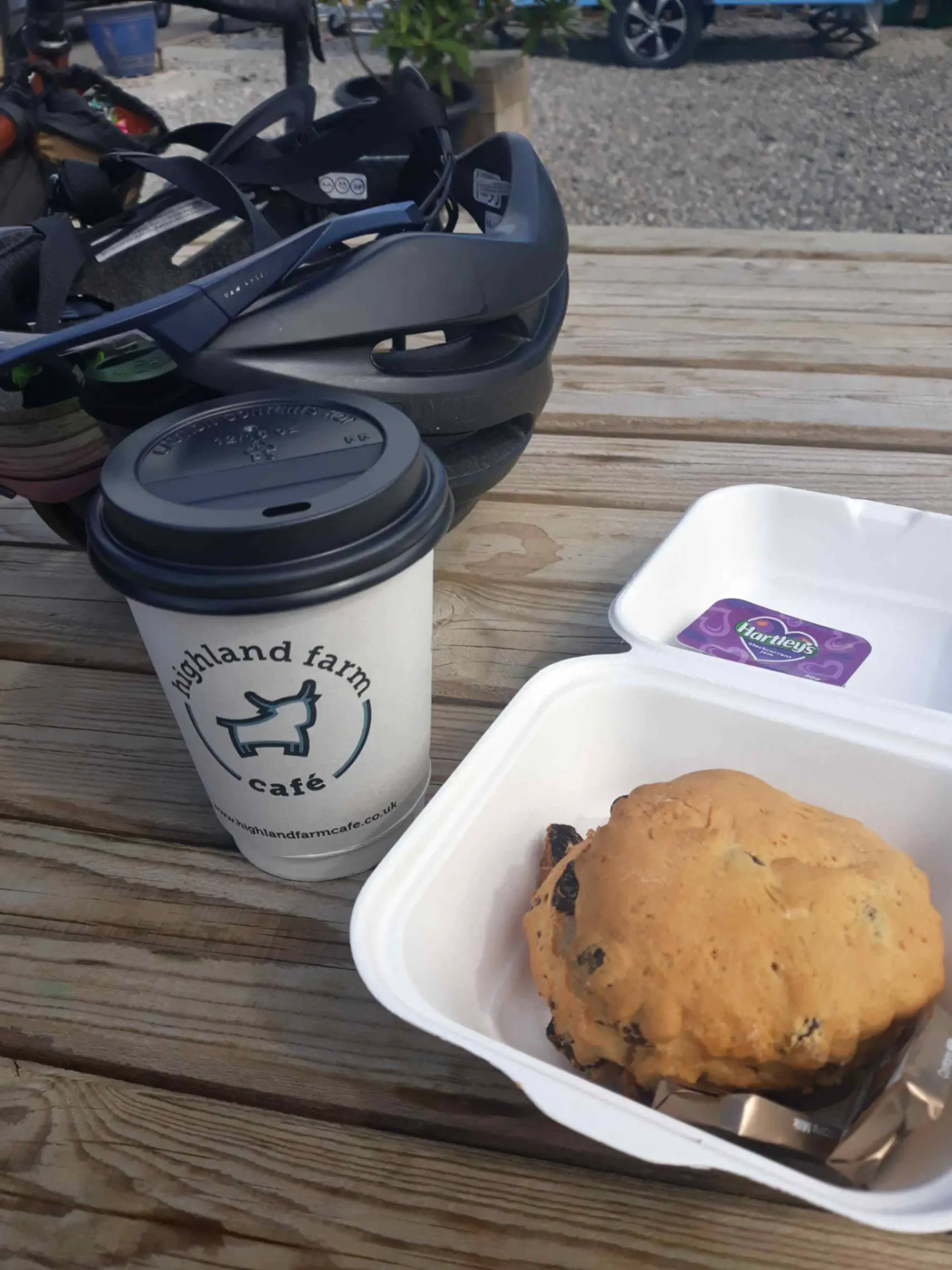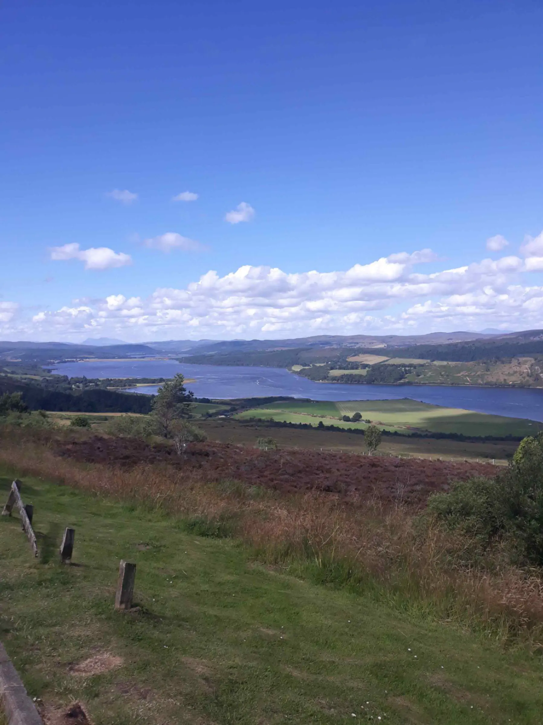 Une fois passée Alness, j’engage une longue mais facile montée sur la colline qui surplombe la rade. J’arrive en haut en sueur (le soleil tape) et je me fait cueillir, comme beaucoup d’autres, par un magnifique café. Il est midi, je meurs de faim et je n’ai plus d’eau, l’occasion est trop belle.