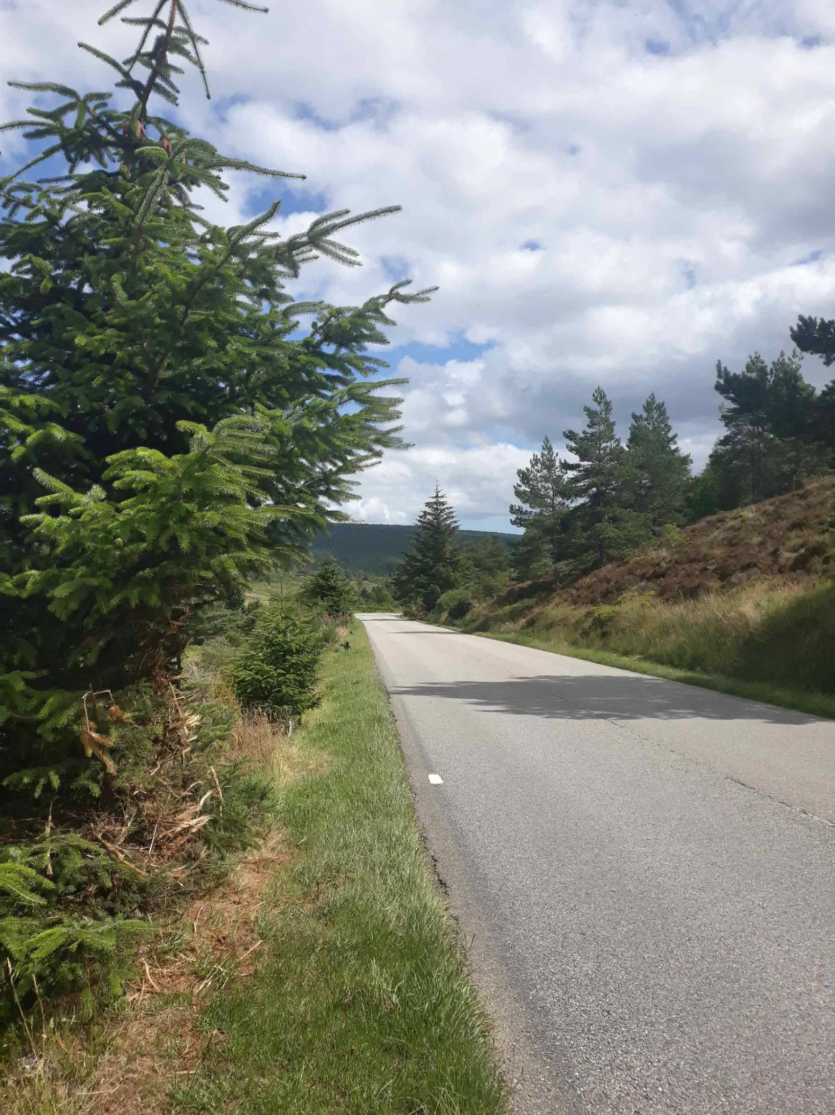 Rassasié, je termine l’ascension de la colline, pour ensuite tout redescendre dans de grands lacets doux à travers les sapins. Décidément, je préfère la route aux voies vertes et autres chemins de terre (n’en déplaise à mes amis vététistes).